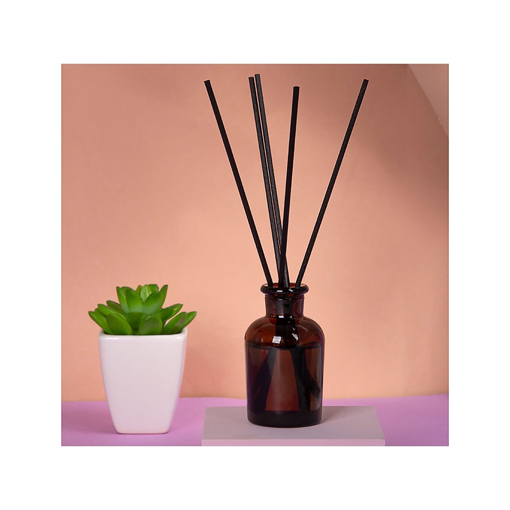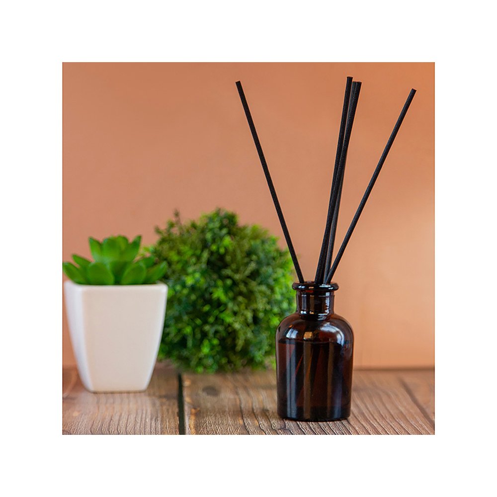 Объём диффузора 50 мл. Его будет достаточно для умеренного поддержания аромата в комнате до 15м2 в течение двух месяцев использования. Насыщенность аромата регулируется количеством используемых фибровых палочек.
