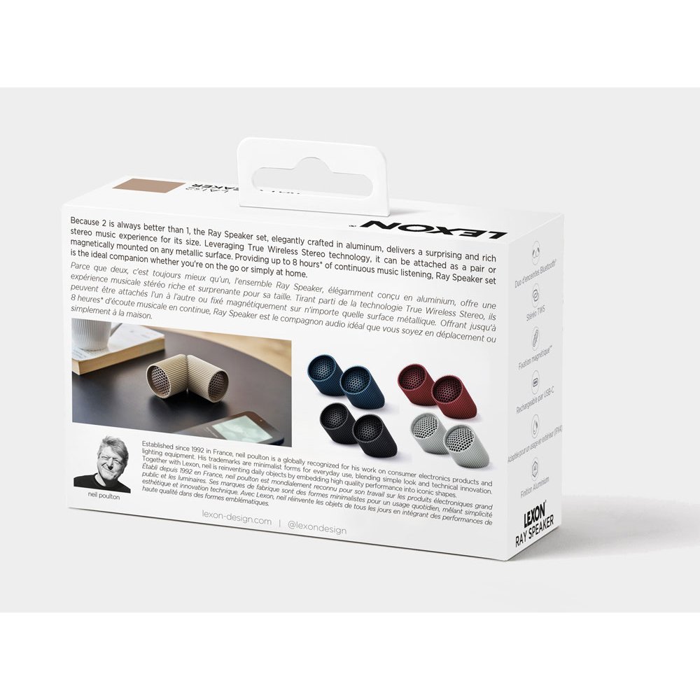 - Ray Speaker — это дуэт магнитных Bluetooth®-колонок, удостоенных наград Red Dot Design Award и IF Design Award. Обеспечивая захватывающий стереозвук благодаря технологии True Wireless Stereo, эти колонки легко крепятся друг к другу или к любой магнитной поверхности, что делает их идеальными для использования дома или в дороге. Помимо прослушивания музыки, Ray Speaker позволяет совершать звонки без помощи рук и дистанционно делать селфи. Благодаря аккумулятору, работающему до 8 часов, и элегантному алюминиевому корпусу, они добавят современный штрих в ваш интерьер, а степень водонепроницаемости IPX4 позволяет использовать их на улице. Доступны различные цвета, которые дополнят ваш стиль. - Комплект магнитных динамиков Bluetooth® - Совместимость с TWS для стереозвучания - Микрофон без помощи рук - Управление селфи - Удобный для использования на открытом воздухе IPX4 - Срок службы батареи: до 8 ч - Время зарядки: 3 ч - Зарядка через кабель USB C в комплекте - Питание: USB-адаптер питания 5 В в комплект не входит