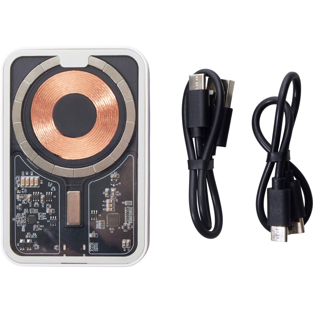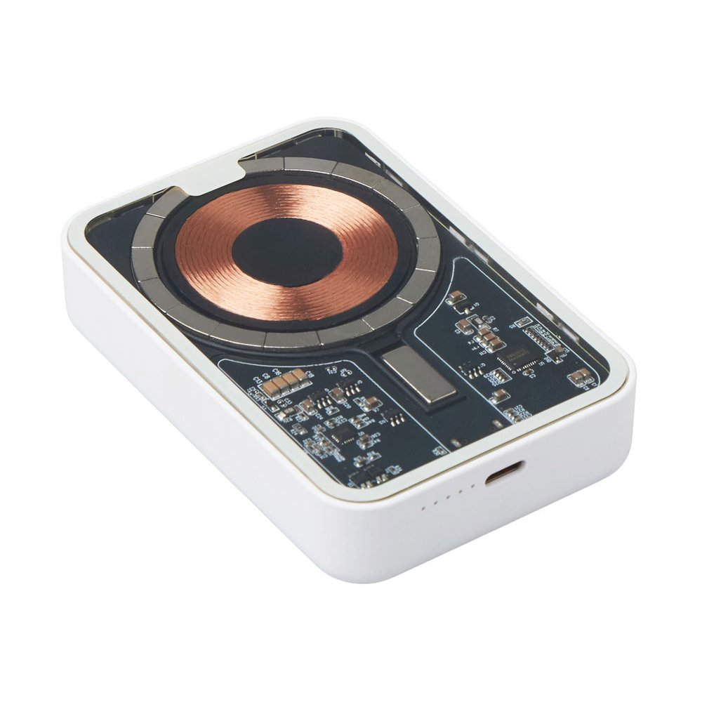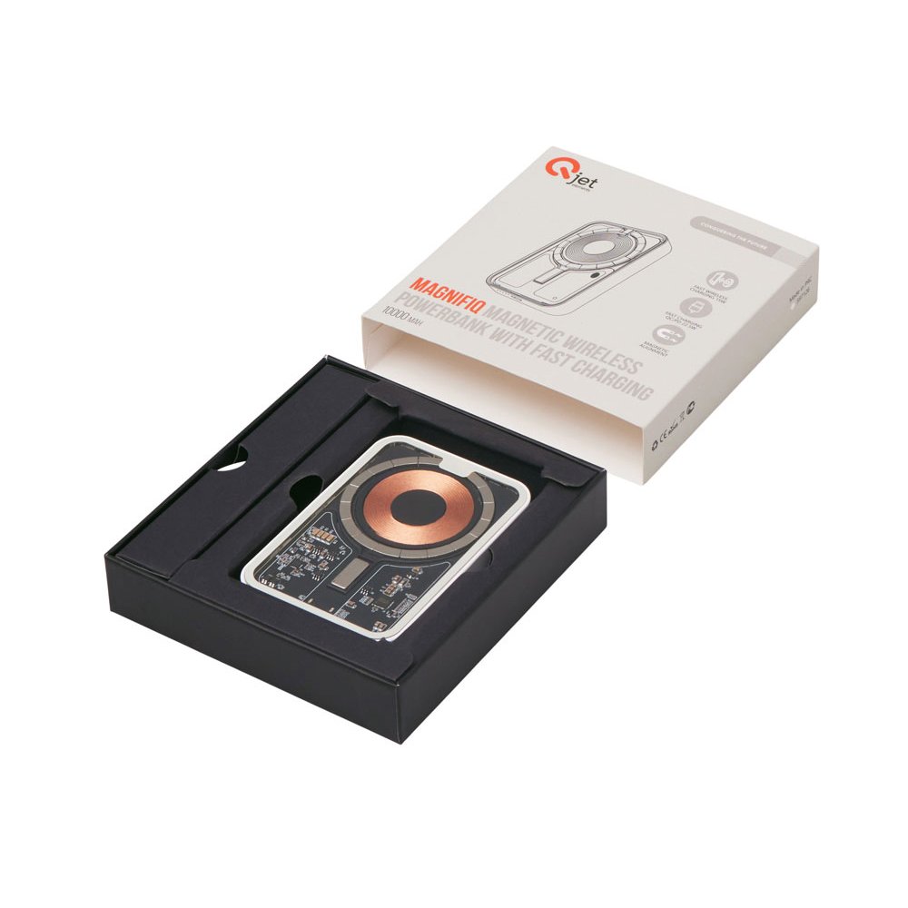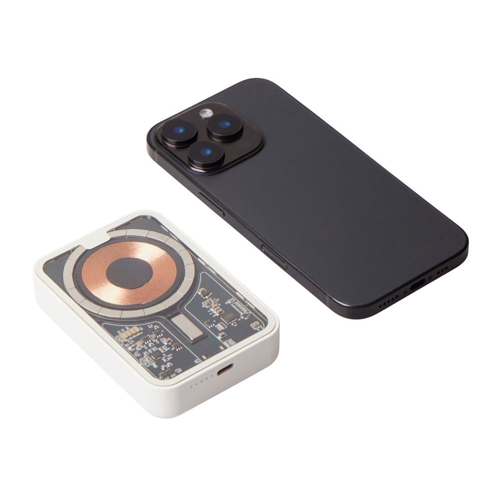 - Беспроводной магнитный внешний аккумулятор MagnifIQ — технологичный и стильный power bank с эффектной прозрачной передней панелью, сквозь которую видны мощные магниты, индукционная катушка и электронная начинка. Ёмкость 10 000 мА·ч обеспечивает до 2–3 полных зарядов смартфона, а поддержка быстрой беспроводной зарядки до 15 Вт (с совместимостью QC/PD) делает процесс зарядки максимально быстрым и удобным. Двунаправленный USB-C порт позволяет как заряжать другие устройства, так и сам аккумулятор. Обе стороны корпуса подходят для нанесения логотипа: лицевая — через прозрачную панель, задняя — на приятное на ощупь soft-touch покрытие. Компактный, надёжный и сильный — идеальный технологичный продукт для продвижения и ежедневного использования. Поставляется в качественной упаковке с шубером, Двунаправленный кабель USB-C и кабель USB-A – USB-C в комплекте. • Прозрачная передняя панель — демонстрирует внутреннюю «начинку» и подчеркивает технологичность бренда. • Магнитная беспроводная зарядка 15 Вт • Ёмкость 10 000 мА·ч — хватает на несколько полных зарядов смартфона. • Двунаправленный USB-C — универсальность для зарядки и подзарядки. • Две зоны нанесения логотипа: на прозрачную панель спереди и на soft-touch покрытие сзади. • Сильные магниты обеспечивают надёжную фиксацию на совместимых устройствах.
