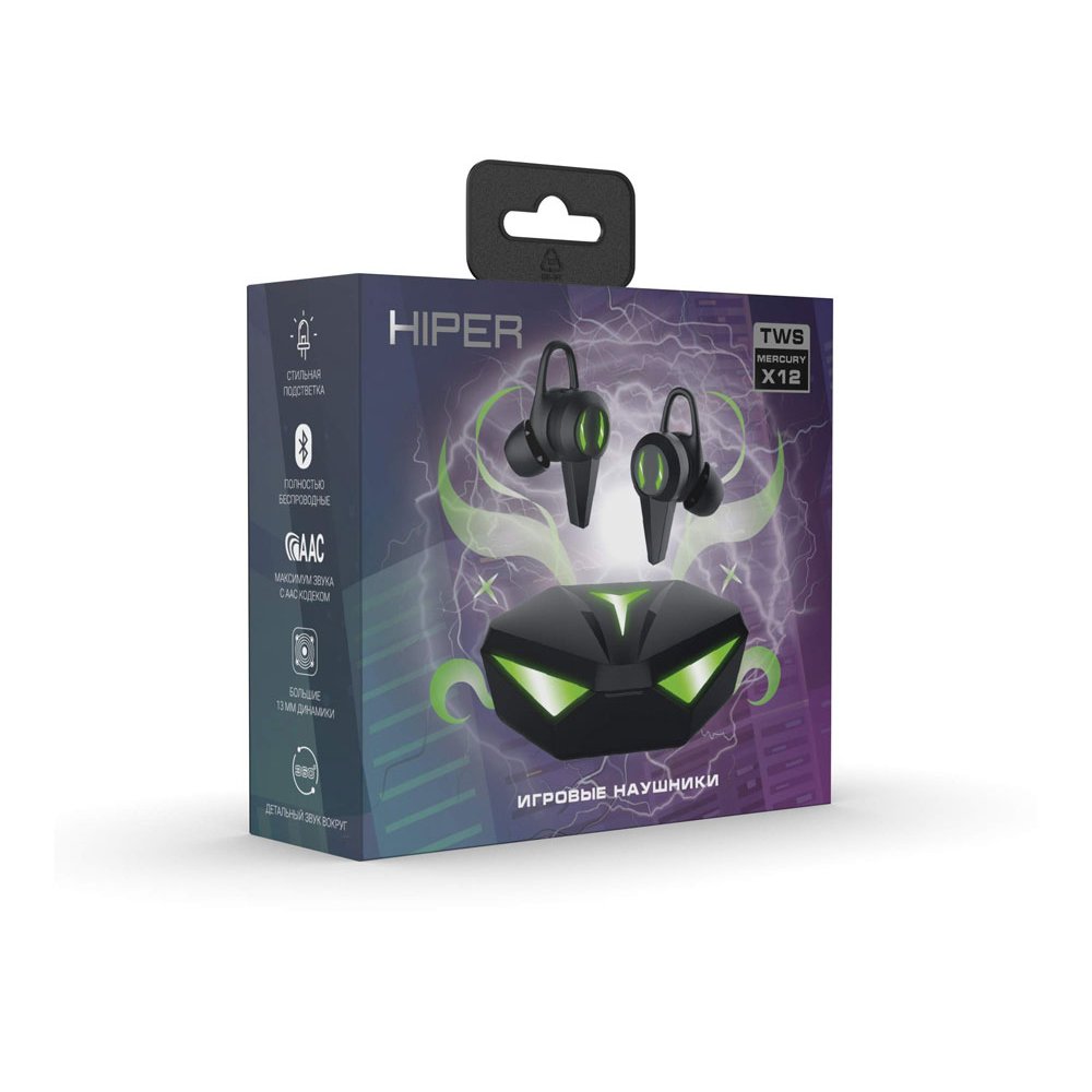 - HIPER TWS Mercury X12 – это беспроводные наушники для тех, кто предпочитает неповторимый стиль и футуристичный дизайн. Вы оцените невероятное удобство в сенсорном управлении музыкой, а также в переключении режимов игры, музыки или звонка. • Низкая задержка передачи звука - 50-60 мс. • Подключаются по Bluetooth 5.1. • Чёткость звука обеспечивают динамики 13 мм чувствительностью 112 дБ. • Ёмкость аккумуляторов в каждом наушнике 35 мАч. • Время активной работы 4.5 часа, работа в режиме ожидания 140 часов, время зарядки 1.5 часа. • Чехол-зарядка оснащён портом type – C и индикатором, отображающим уровень заряда кейса и каждого наушника. • Ёмкость аккумулятора кейса 350 мАч, время работы от аккумулятора в кейсе 6 часов. • Есть функция поддержки голосовых ассистентов Google, Siri.