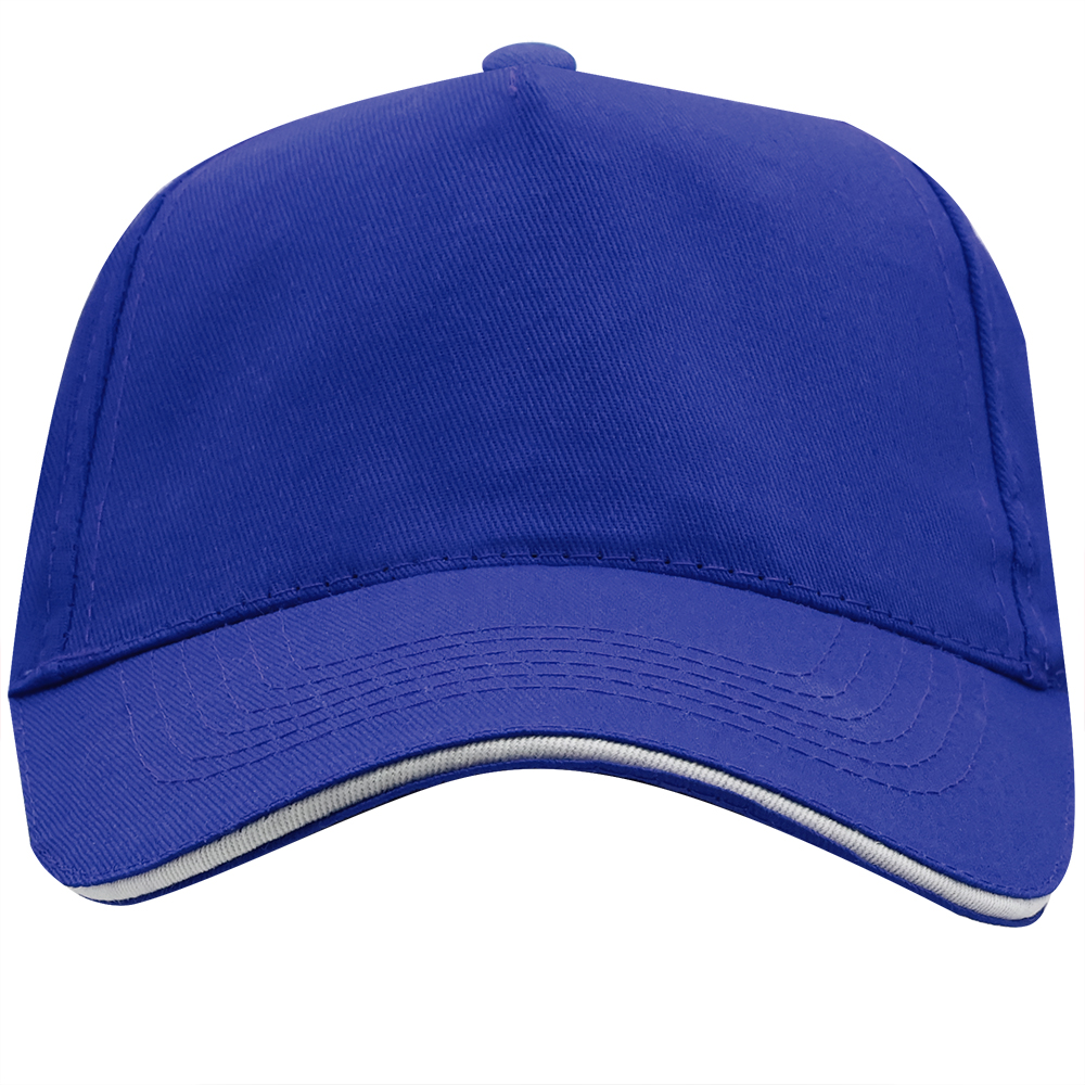 5-панельная бейсболка сэндвич с контрастными деталями. Козырек с 6 отделочными строчками. Четыре вентиляционных отверстия. Внутренняя лента для защиты от пота. Застежка на липучке.