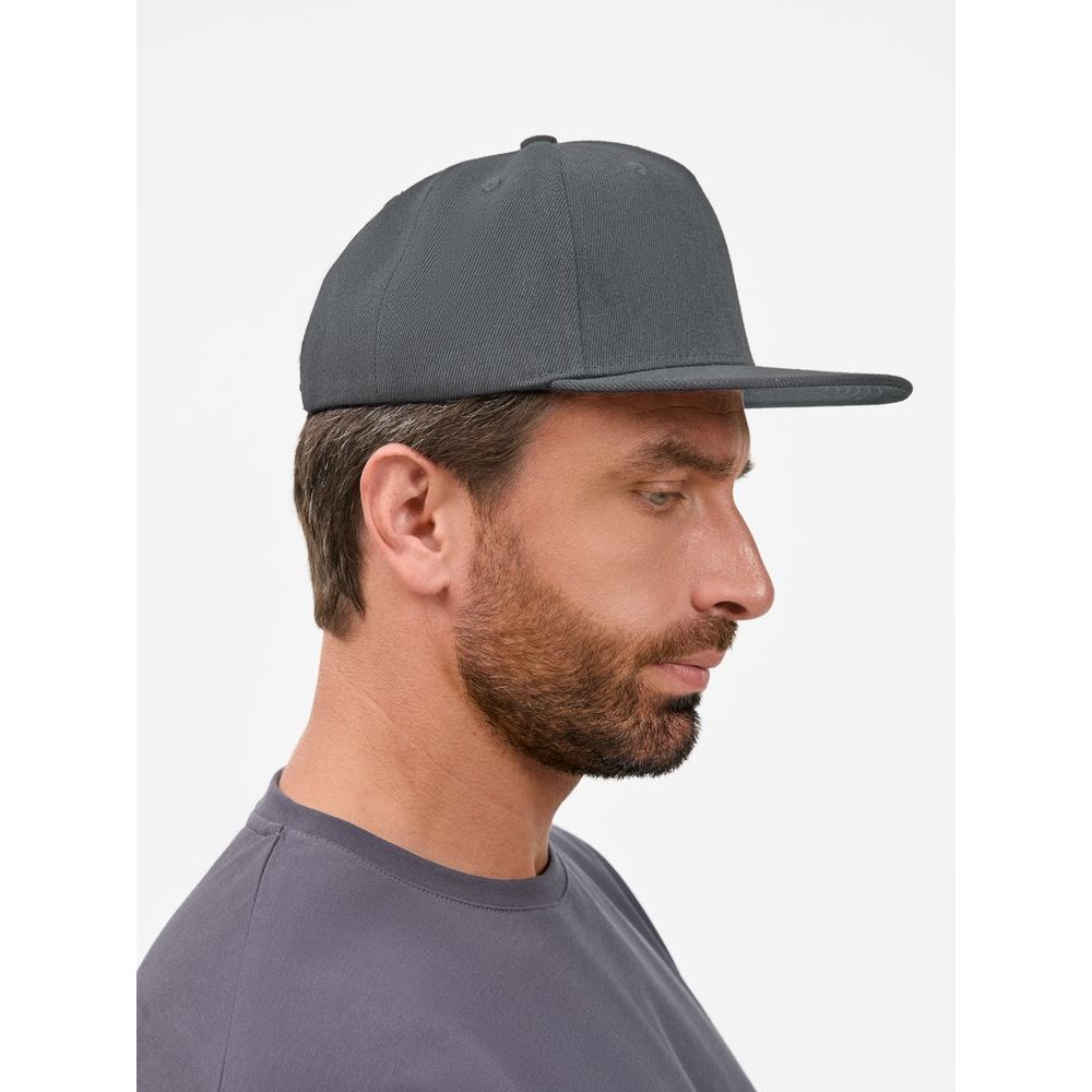 Бейсболка с прямым козырьком из плотного фактурного полиэстера отлично держит форму и не выцветает.