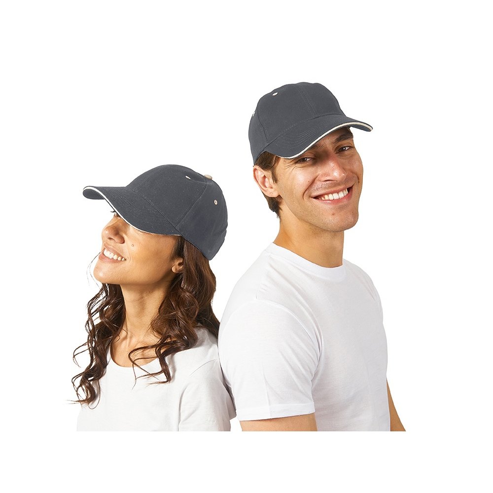 - Стильная 6-панельная промо-бейсболка с контрастными деталями. Отличный выбор для яркого и запоминающегося брендинга. - Классическая бейсболка сшита из 6 панелей. - Яркие акценты – контрастная верхняя пуговичка, а также вышитые люверсы – стильная деталь, привлекающая внимание и усиливающая узнаваемость бренда. - Эффективная вентиляция: люверсы обеспечивают комфорт при носке - Премиальный вид козырька конструкции "сэндвич" с декоративным контрастным кантом по краю, не только эстетично, но и повышает жесткость и долговечность козырька. - Удобная посадка - регулируемая застежка на липучке (велкро) гарантирует идеальное прилегание на любую голову.