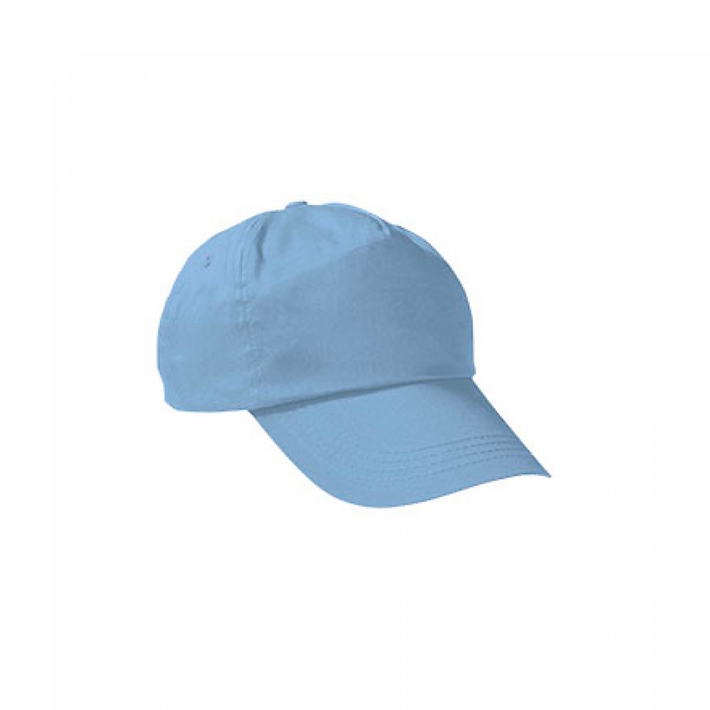 - 100% хлопок. 175 г/м2 саржевое плетение. 5 клиньев. Без лобового шва, подходит для печати. Изогнутый козырек. Задняя застежка на липучке. 2 вышитых отверстия. Съемное переднее усиление. 300 единиц в коробке. 50 штук в упаковке: 1 размер, 1 цвет.