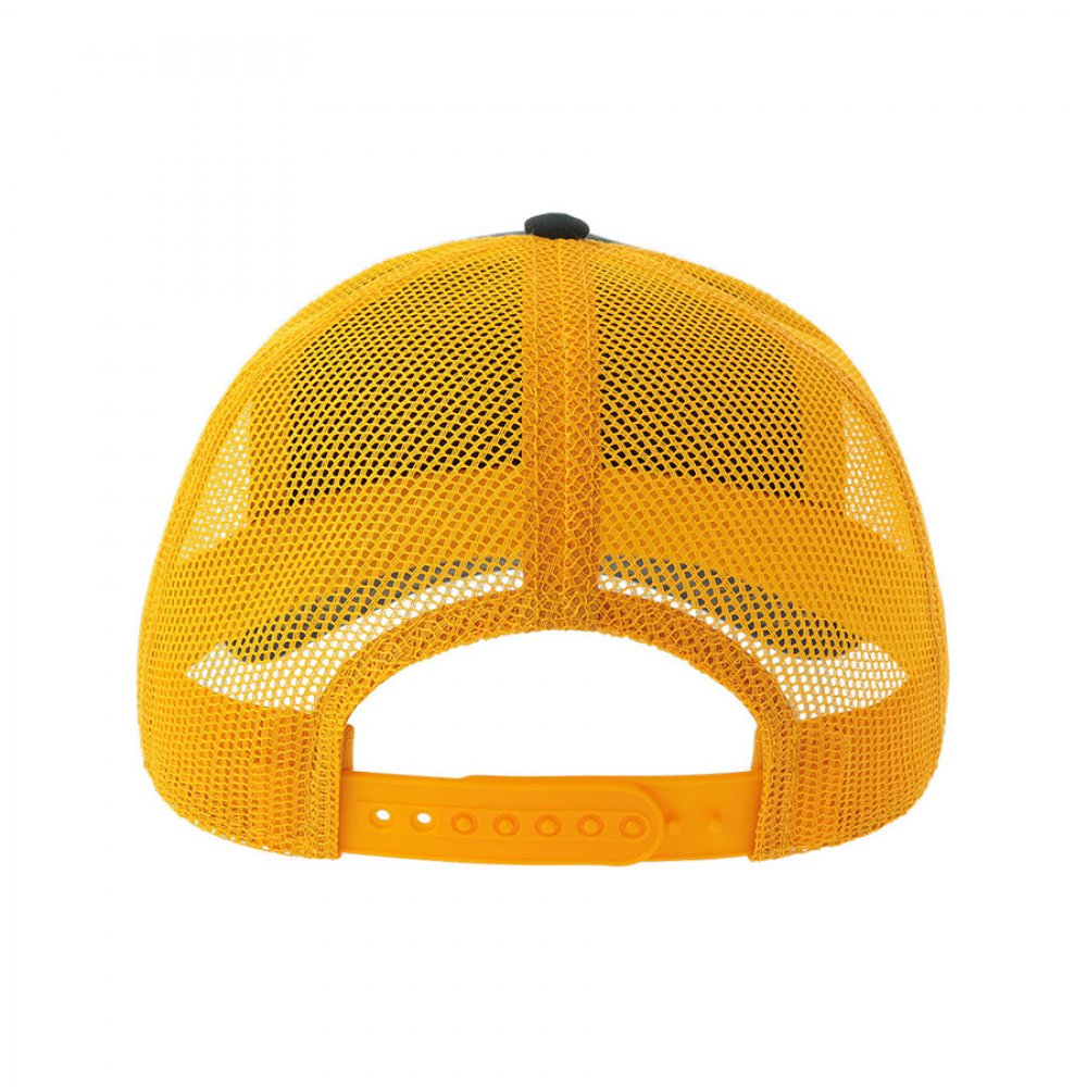 - - 5 клиньев, - без лобового шва, - боковые и задние панели со вставкой из мягкой сетки, - изогнутый козырек, - пластиковая застежка. Лобная часть купола и козырек: цвет близкий к Pantone 296 C, сетка: цвет близкий к Pantone 1235 С 58,5 см - средний размер, с помощью застёжки его можно увеличить или уменьшить до необходимого.