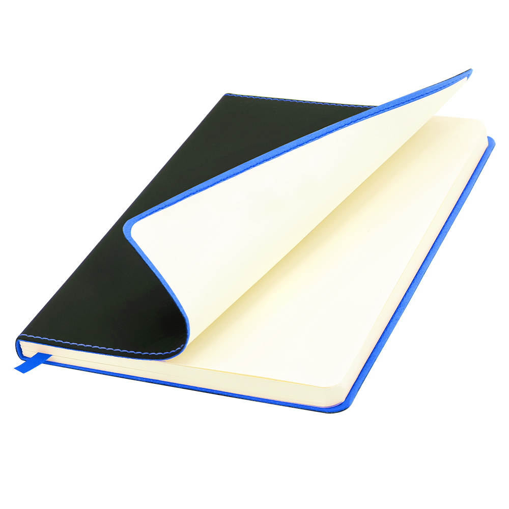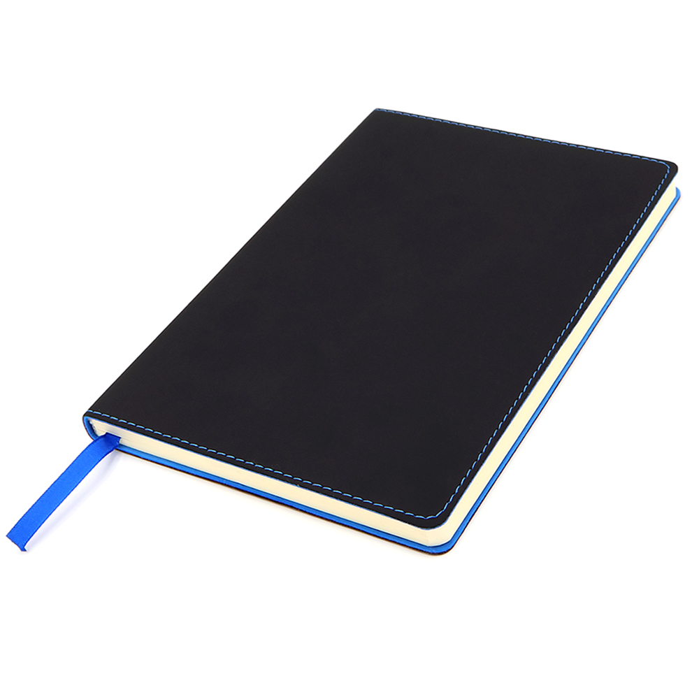 - Блонот формата А5 в мягкой обложке из искусственной кожи. Материал обложки - термополиуретан. Основной цвет - чёрный; строчка по периметру, внутенний край и ляссе - зелёного цвета. Размеры: 214*144мм, 80 листов, разлинееные страницы, бумага плотностью 80г/м2.