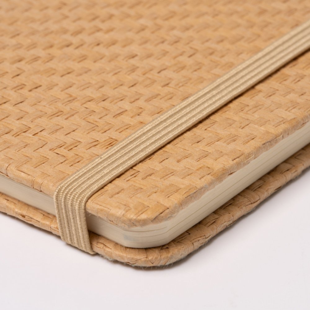- Блокнот А5 в твёрдом переплете из натуральной соломы. Маркер страницы и эластичная лента. 80 не линованных листов.