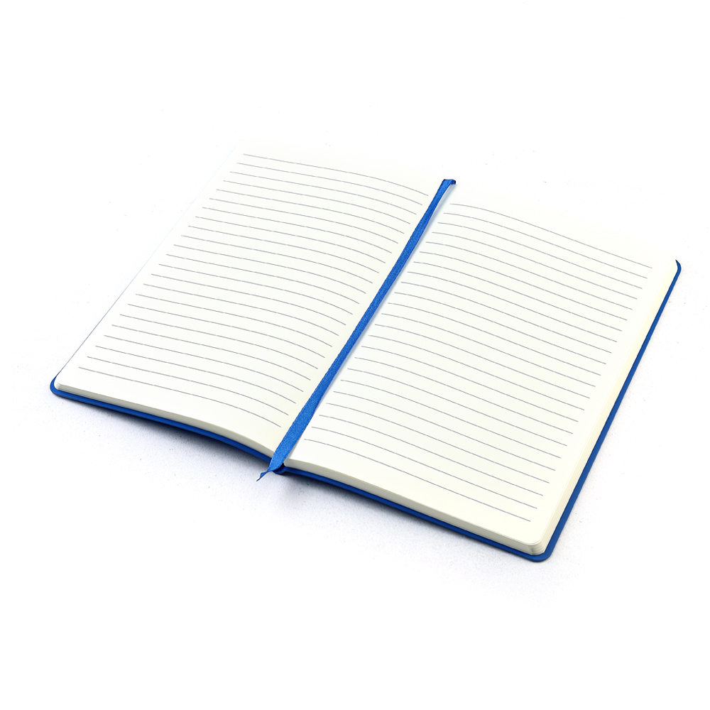 - Блокнот формата А5 с твердым покрытием из PU-материала с имитацией рисунка кожи, с эластичной застежкой для закрытия и текстильной закладкой в цвет блокнота, 192 страницы, плотность 70г/м, страницы с черными линиями. Цвет по PANTONE® (максимально приближен): 4154C.