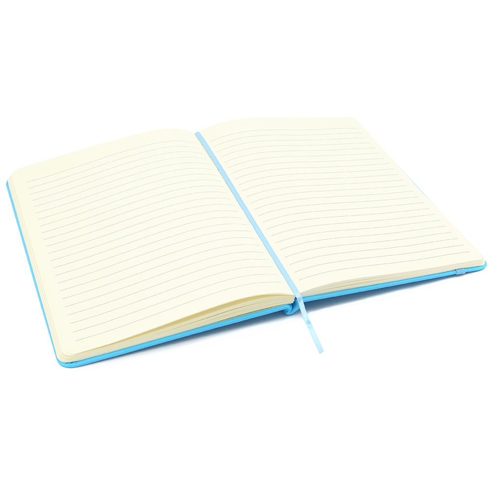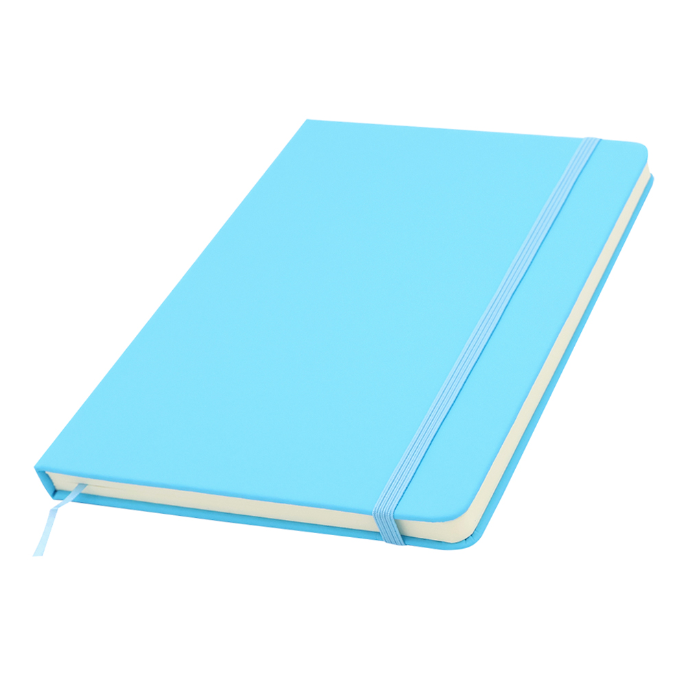 - Блокнот формата А5 с твердым покрытием из PU-материала с имитацией рисунка кожи, с эластичной застежкой для закрытия и текстильной закладкой в цвет блокнота, 192 страницы, плотность 70г/м, страницы с черными линиями. Цвет по PANTONE® (максимально приближен): 298 С