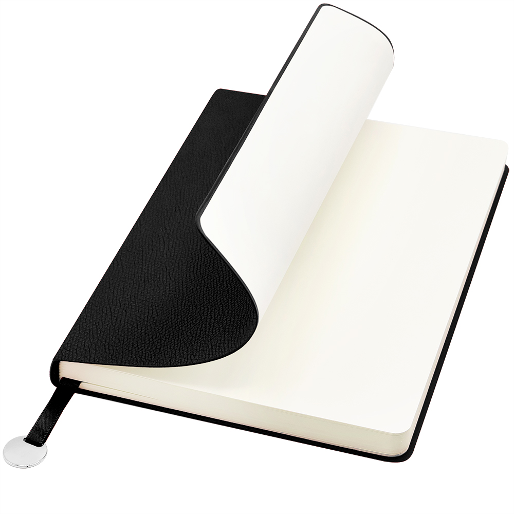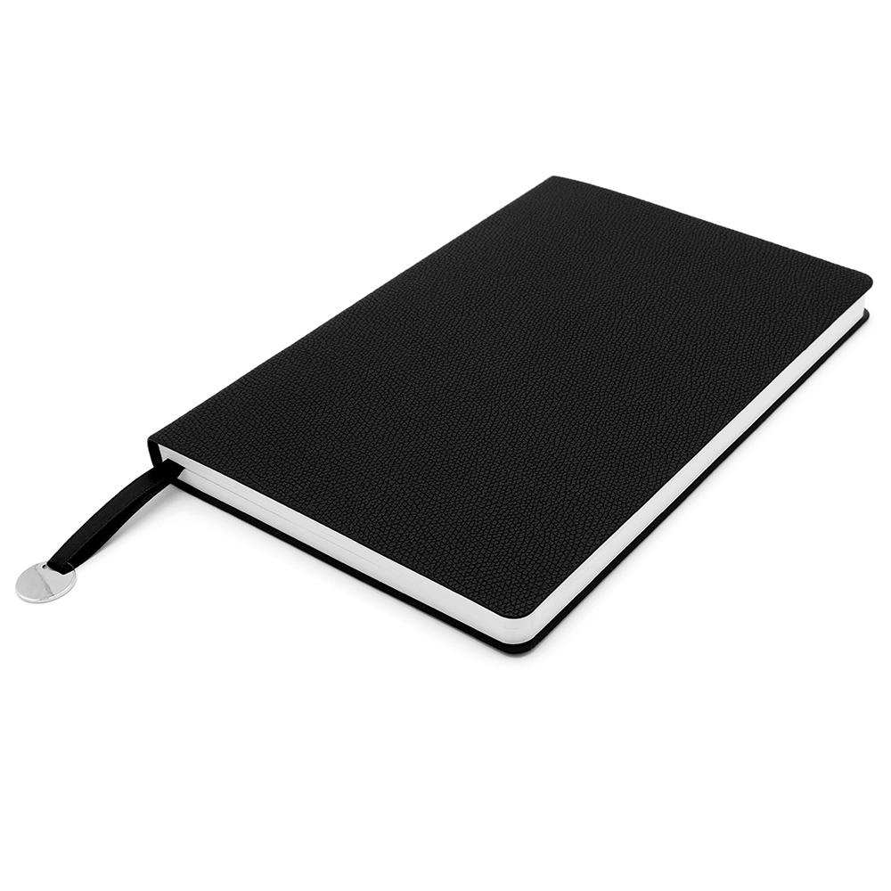 - Блокнот формата А5 в гибкой обложке из искусственной кожи. Материал обложки — полиуретан, текстура напоминает кожу очень дикого зверя. Ляссе и каптал блокнота соответствует цвету обложки. На конце ляссе присутствует металлический жетон, куда можно заказать гравировку логотипа организации. Размеры: 210*147*13 мм, 256 страниц / 128 листов, страницы в линейку, плотность бумаги — 70г/м2.