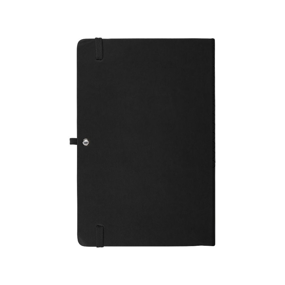 - Блокнот А5 Theta. Блокнот А5 в приятной на ощупь обложке в стильном геометрическом дизайне. 80 листов линованной бумаги 80г/м2, закладка - лента, эластичная застежка и петелька для ручки. Кожзаменитель.
