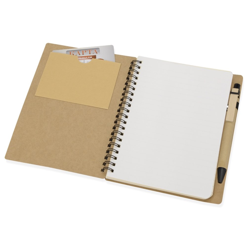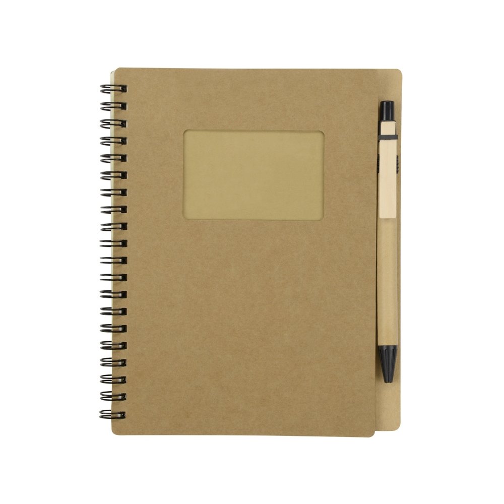 - Блокнот «Дейзи» сделан из бумаги и картона и переплетен на пружине. В обложке блокнота предусмотрено окошко 8,3 х 4,7 см, в которое можно поместить визитную карточку или полиграфическую вставку размером 9 х 5,8 см. В комплекте с блокнотом идет ручка, которая вставляется в петельку сбоку. Блокнот с ручкой «Дейзи» – универсальный сувенир в эко-стиле.