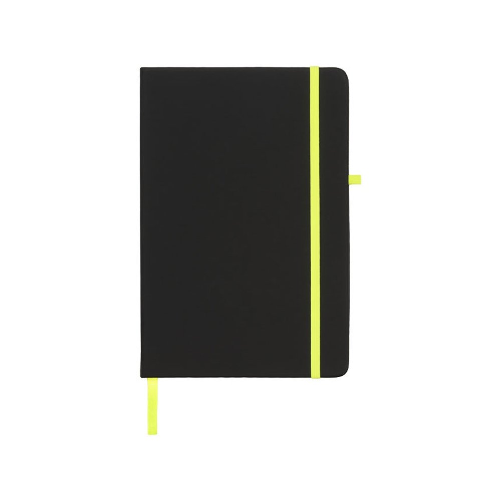 - Блокнот Noir среднего размера. Блокнот Noir с мягкой на ощупь черной ПУ обложкой. В каждом блокноте есть цветная застежка, держатель для ручки и лента-закладка. Блокнот содержит 96 листов линованной бумаги (70 г/м²) кремового цвета. ПУ.