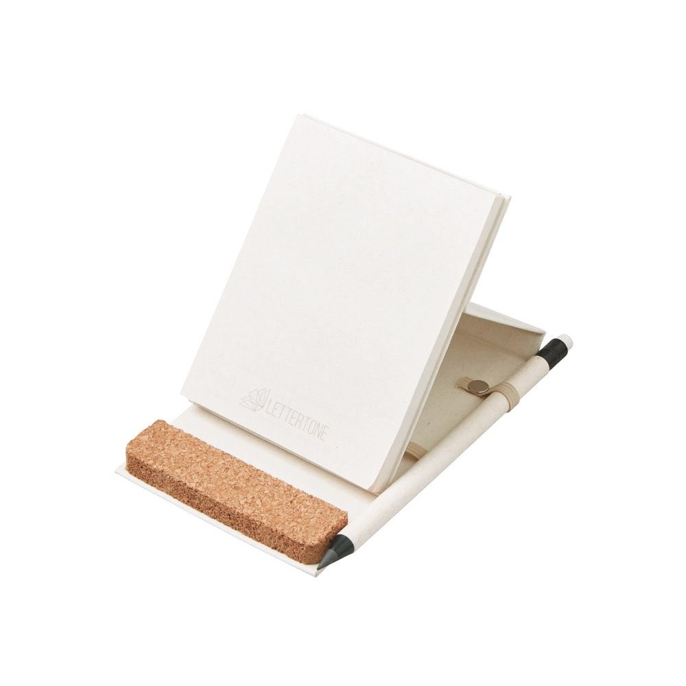 - Удобный блокнот-репортер из переработанных тетрапаков с фиксирующей резинкой и петлей для ручки. Пробковое основание может как фиксировать блокнот в стоячем положении, так и стать подставкой для телефона на рабочем столе. В блокноте 70 листов плотностью 80 г/м2 бумаги из переработанных тетра-паков.