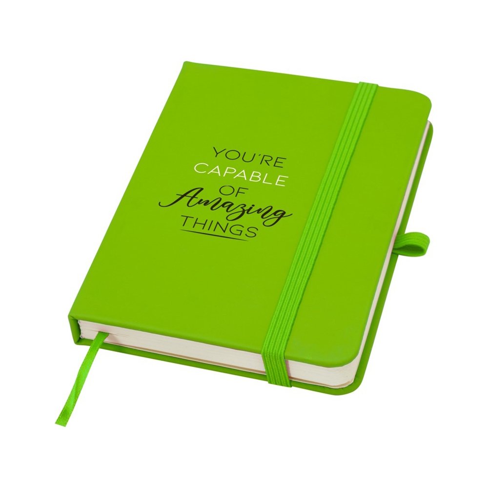 - Блокнот Spectrum Plus формата А6 в твердой обложке с закругленными углами — это не только необходимая вещь в офисе, но и прекрасная возможность для продвижения вашего бренда. Картонный блокнот имеет мягкую на ощупь обложку и 80 линованных листов кремового цвета плотностью 70 г/м², идеально подходит для записи быстрых идей или длинных заметок. Блокнот оснащен петлей для ручки, эластичной застежкой, ленточкой-закладкой и карманом-гармошкой.