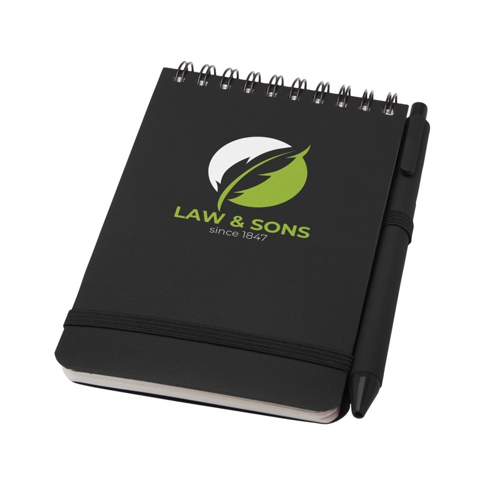 - Блокнот Thalaasa формата А6 в твердой обложке изготовлен из переработанного океанического пластика и содержит 80 линованных листов кремовой бумаги плотностью 70 г/м². Блокнот имеет закругленные углы, эластичную застежку и петлю для ручки. Шариковая ручка с черными чернилами также изготовлена из переработанного океанического пластика. Длина непрерывной линии: 1000 метров. Размер пера: 1,0 мм.