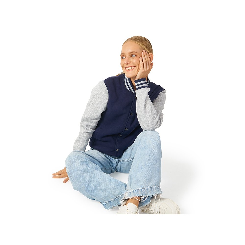 - Бомбер может выступать в качестве верхней одежды в теплое время года, разнообразит гардероб, добавив нотку спортивного стиля и расслабленной небрежности в образ. Уместно выглядит не только на подростках, но и на взрослых людях, комфортно комбинируется с лонгсливами, футболками и майками. - может стать частью спортивной формы, в том числе университетской или школьной - контрастные элементы можно обыграть при помощи брендирования, сочетая их с логотипом
