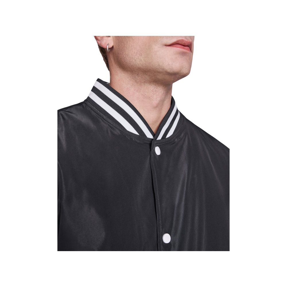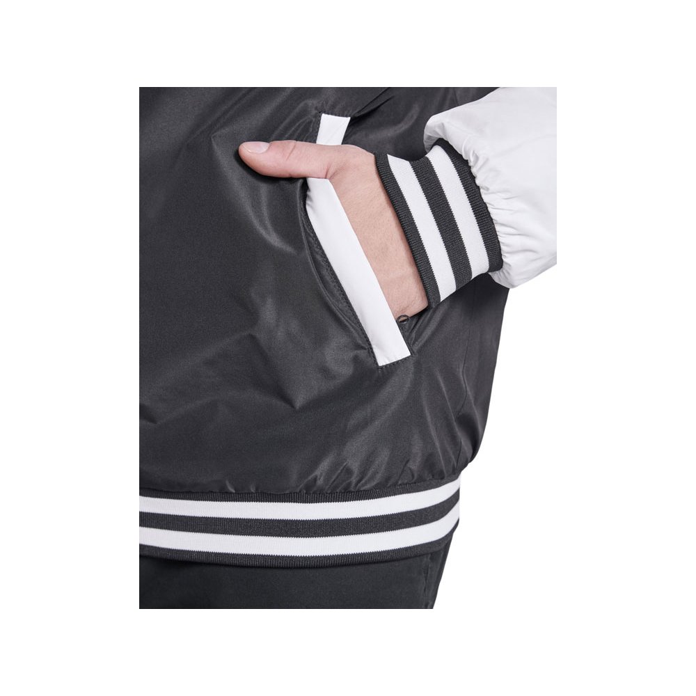 - Утепленный бомбер колорблок из двух цветов. Воротник, манжеты и низ из риба 1х1 с двумя контрастными полосами. Боковые карманы закрываются на молнию. Контрастный кнопки.