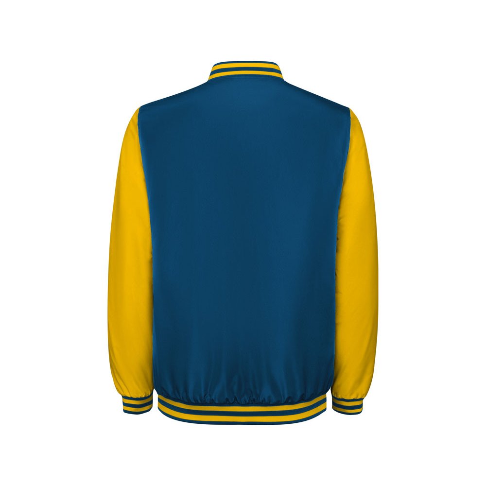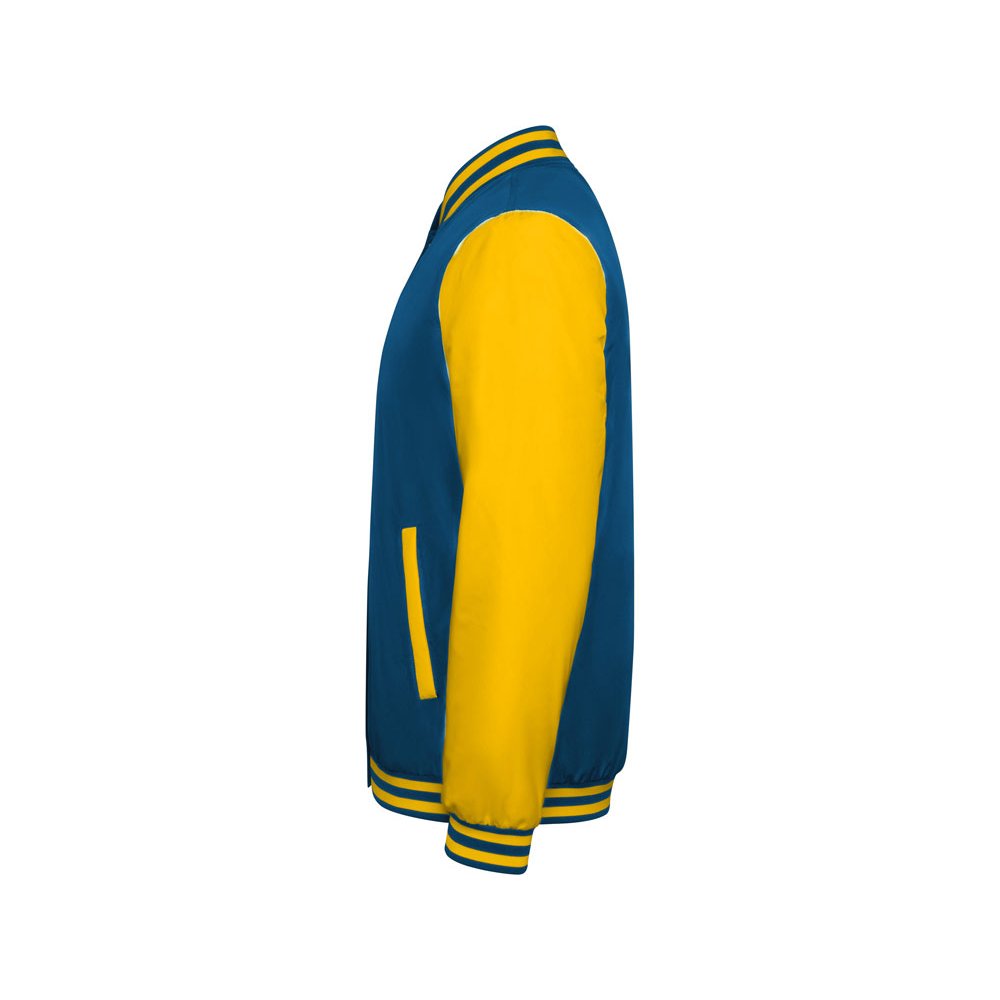 - Утепленный бомбер колорблок из двух цветов. Воротник, манжеты и низ из риба 1х1 с двумя контрастными полосами. Боковые карманы закрываются на молнию. Контрастный кнопки.