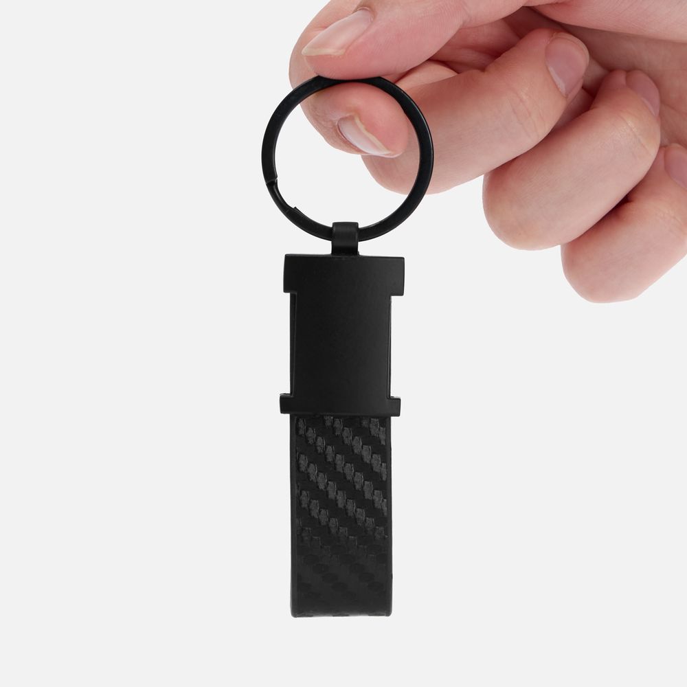- Aksel — это не просто брелок, а выразительный акцент, который сочетает в себе стиль и функциональность. Текстурный эффект карбонового волокна придает изделию динамичный технологичный облик, уместный в любом стиле — от делового до повседневного.
