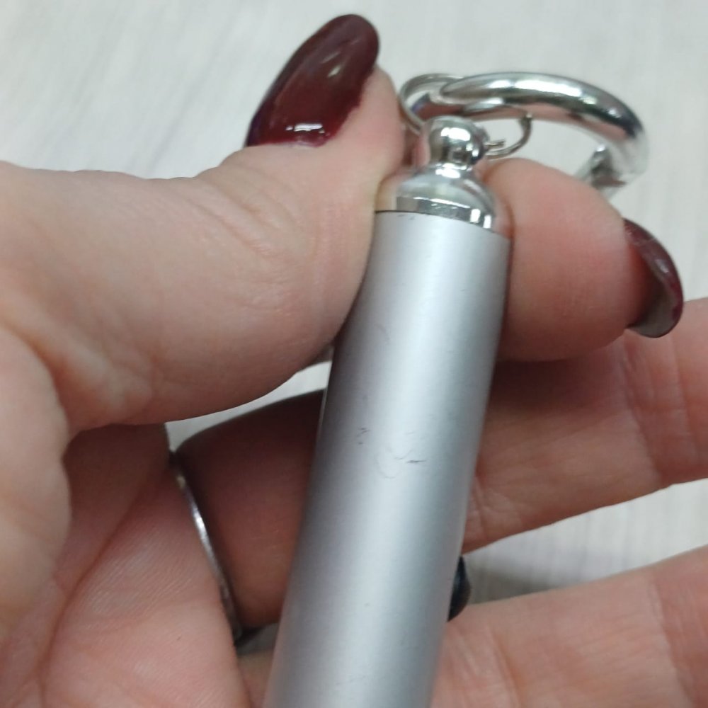 - Металлический брелок имеет встроенный яркий фонарик, а вместо кольца крепления – симпатичный карабин. Очень пригодится для подсветки в темноте, ведь вряд ли кто-то ежедневно носит с собой обычный фонарь.