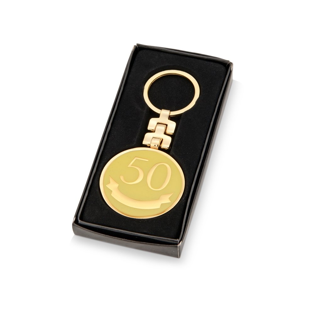 - Юбилей - знаменательная дата, достойная особенного внимания. Отличным подарком к 50-тилетию станет брелок "Юбилейный", выполненный в форме медали с гравировкой 50. Этот функциональный сувенир сохранит память о годовщине и дарителе на долгое время.
