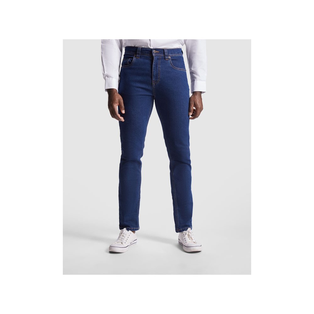 - Джинсы мужские. · Классический крой и средняя посадка. · Пояс с 5 шлевками. · Застежка на металлическую молнию. · Два передних кармана и карман для монет. · Два задних кармана. · Полуприлегающий силуэт из ткани с эластаном.