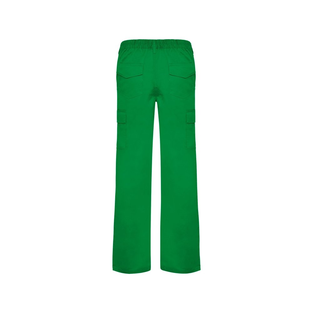- Брюки из прочной ткани. 1. Регулируемый эластичный пояс сзади. 2. Два кармана спереди. 3. Функциональные карманы сзади с клапаном на липучке. 4. Два функциональных боковых кармана карго с клапаном на липучке. 5. Дополнительное усиление сзади для защиты от протирания при сидении. 6. Двойная ткань на коленях.