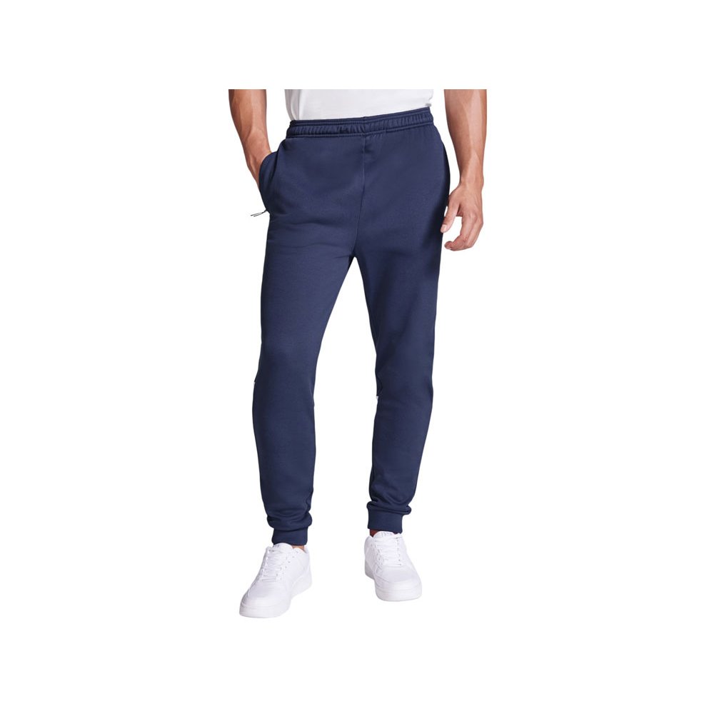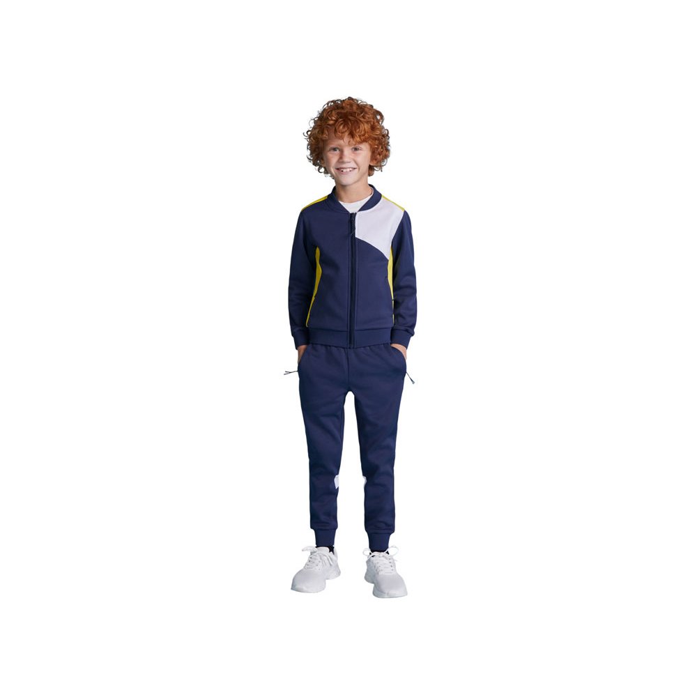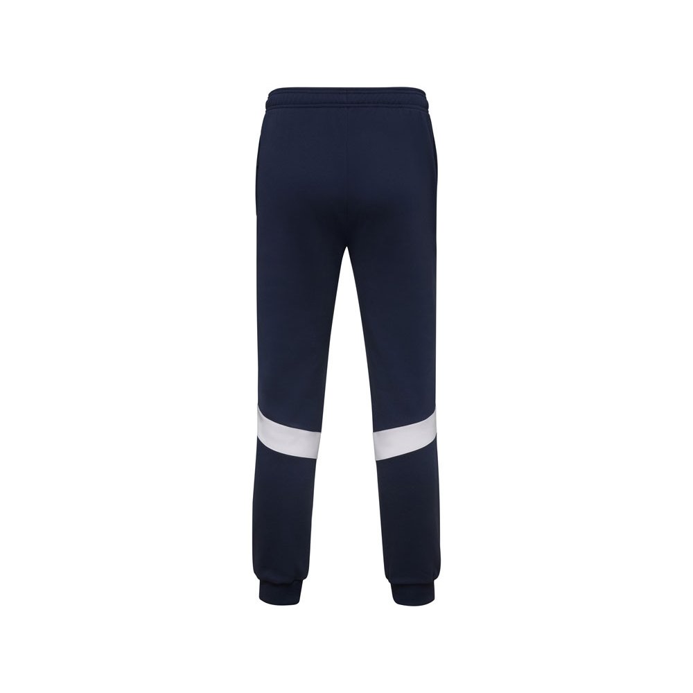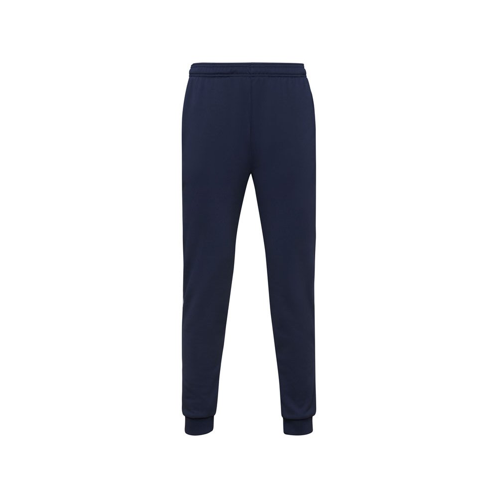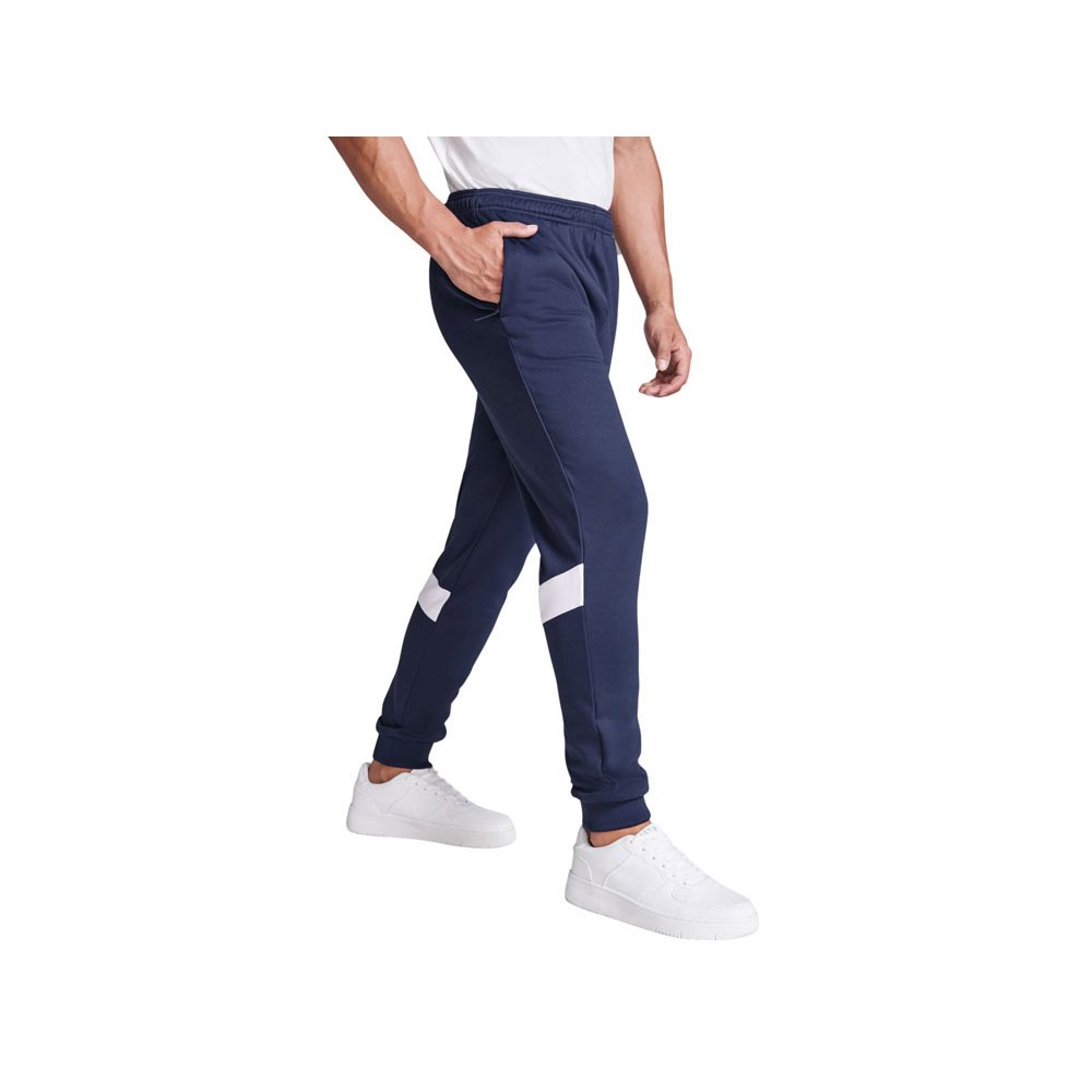 - Спортивные брюки с эластичным поясом и шнурком. Боковые карманы закрываются на молнию. Контрастные лампасы белого цвета. Низ с манжетами из риба 1х1. Может быть с комбинирован с курткой Leros.