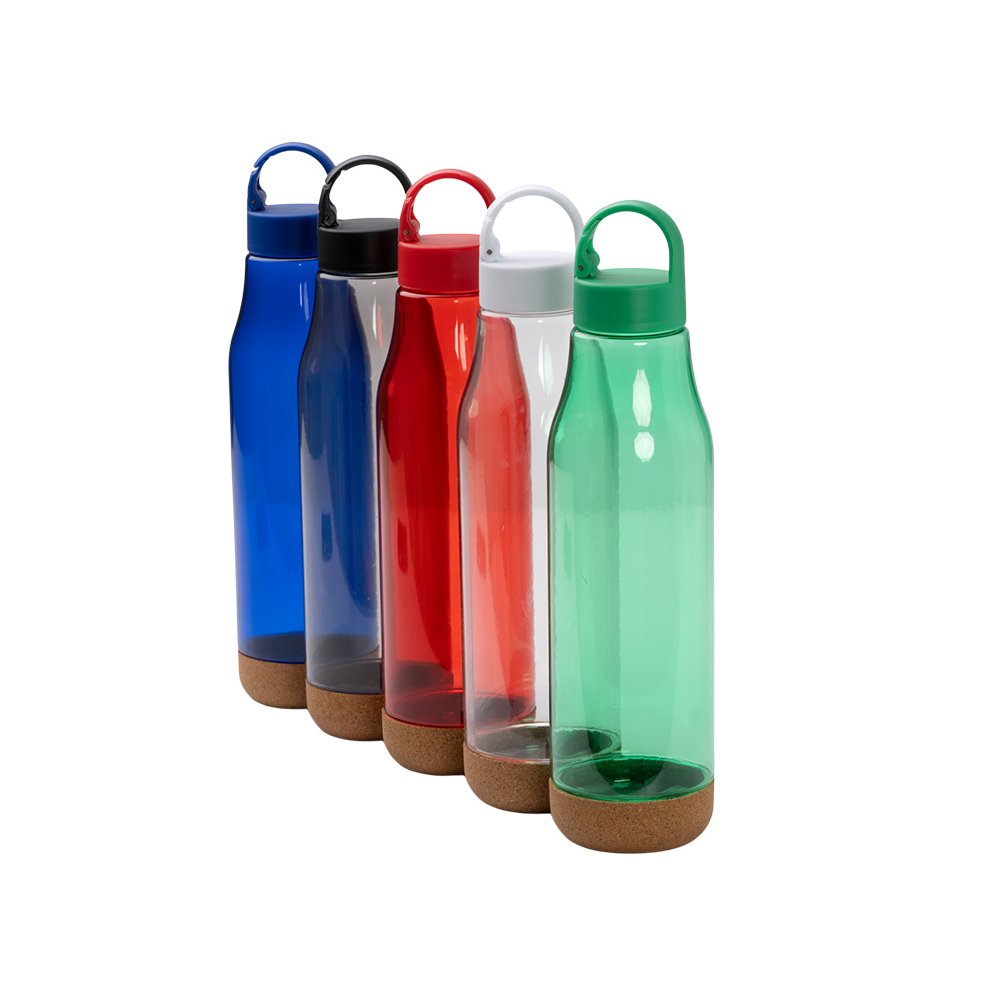Бутылка с пластиковым корпусом и пробковым дном. Ручка для переноски с карабином на крышке. Объем: 720 мл. Упаковка: эко-дизайн.