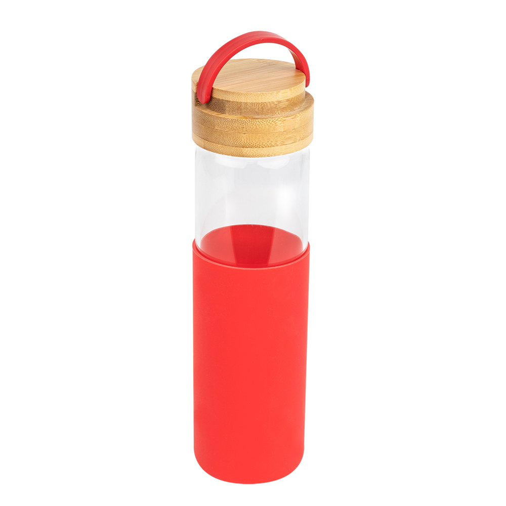 Бутылка стеклянная с силиконовой манжетой и бамбуковой крышкой Glass, красная арт. 14032.05