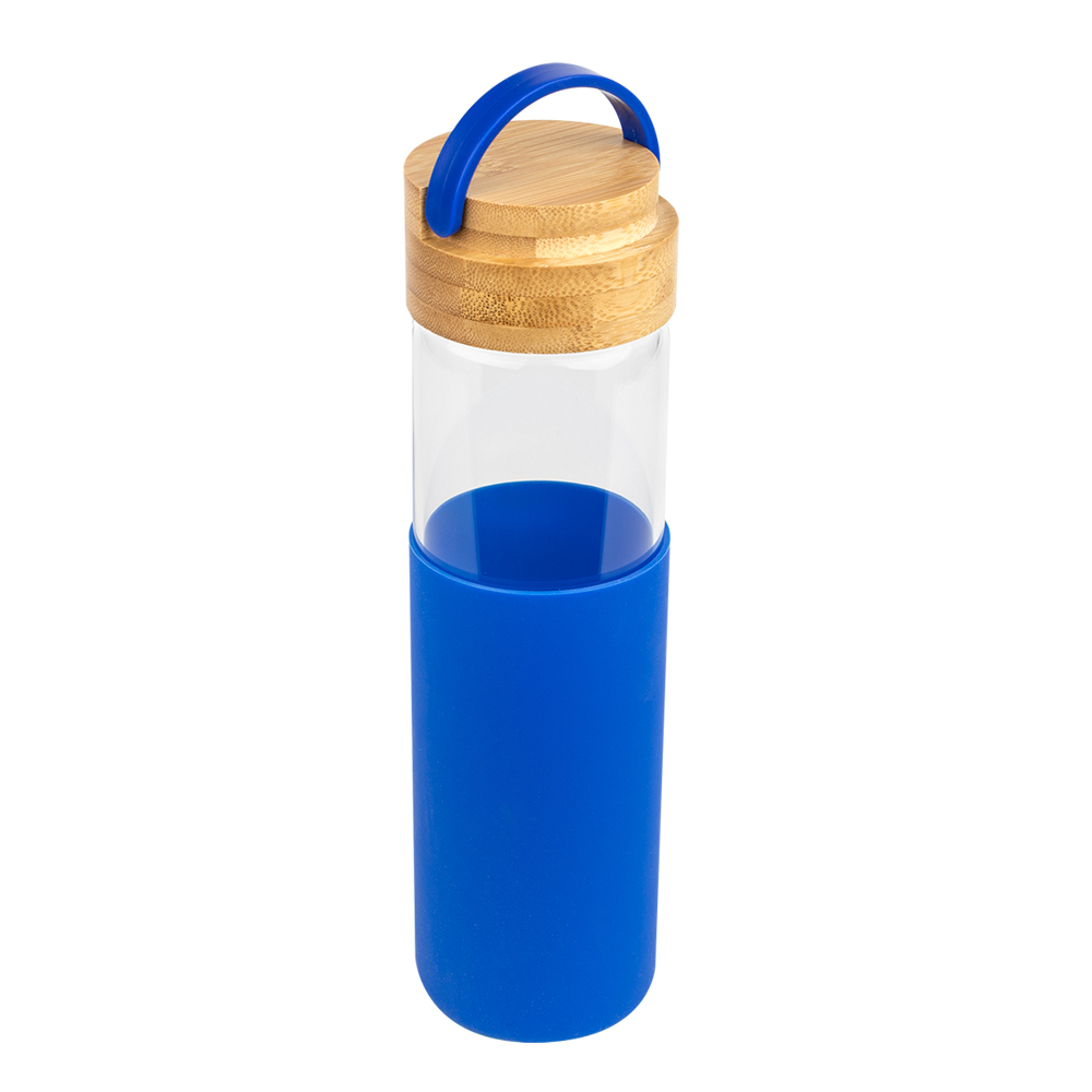 Бутылка стеклянная с силиконовой манжетой и бамбуковой крышкой Glass, синяя арт. 14032.03