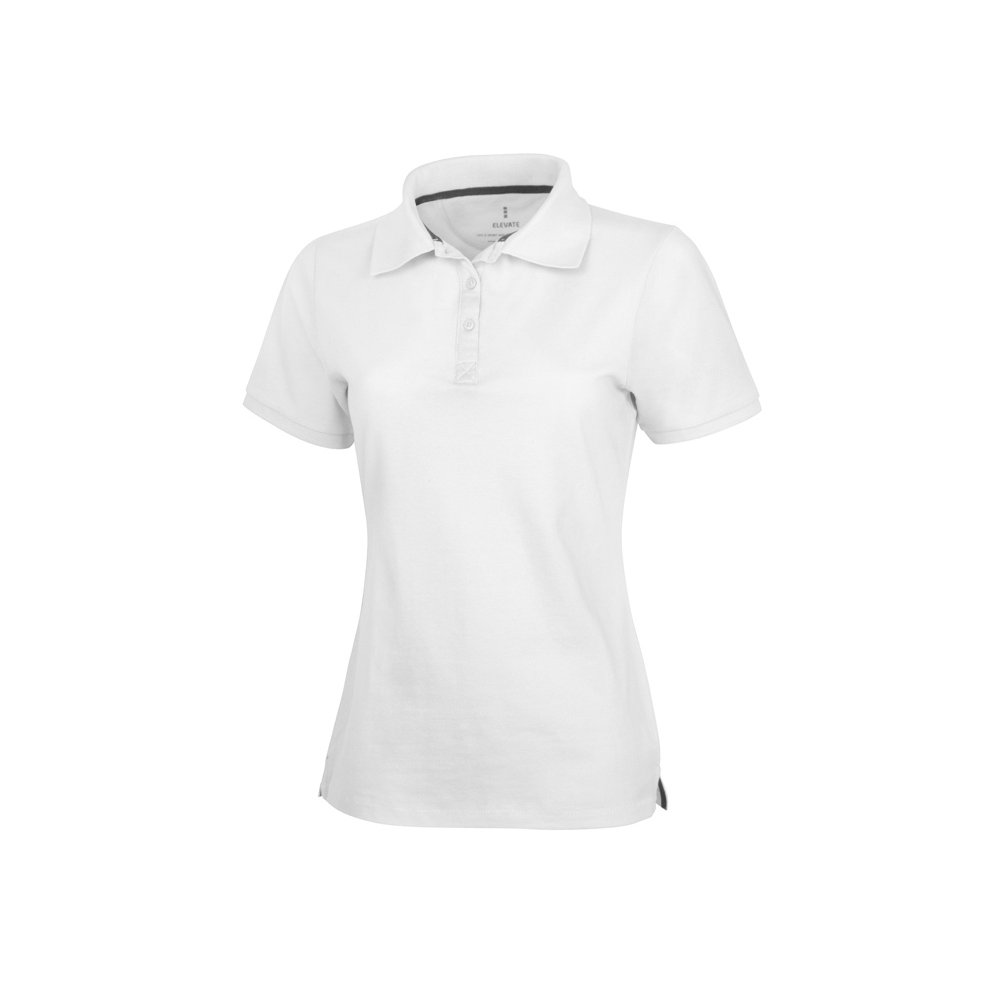 - Женская рубашка поло с короткими рукавами Calgary. Стандартный покрой. Опущенный плечевой шов, цепная строчка. Мужская и детская модели на двух пуговицах. Женская модель с планкой на три пуговицы. Боковые разрезы с атласной лентой внутри. Детали со швами Pick-Stitch. Принт лого сзади в тон изделия. Атласная лента внутри горловины. Полумесяц. Резинка 1х1 на воротнике и манжетах. Трикотажное пике, 100% хлопок. 200 г/м².