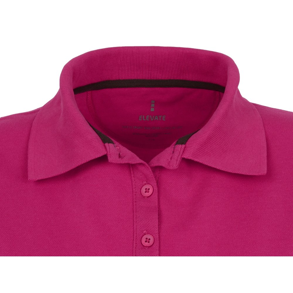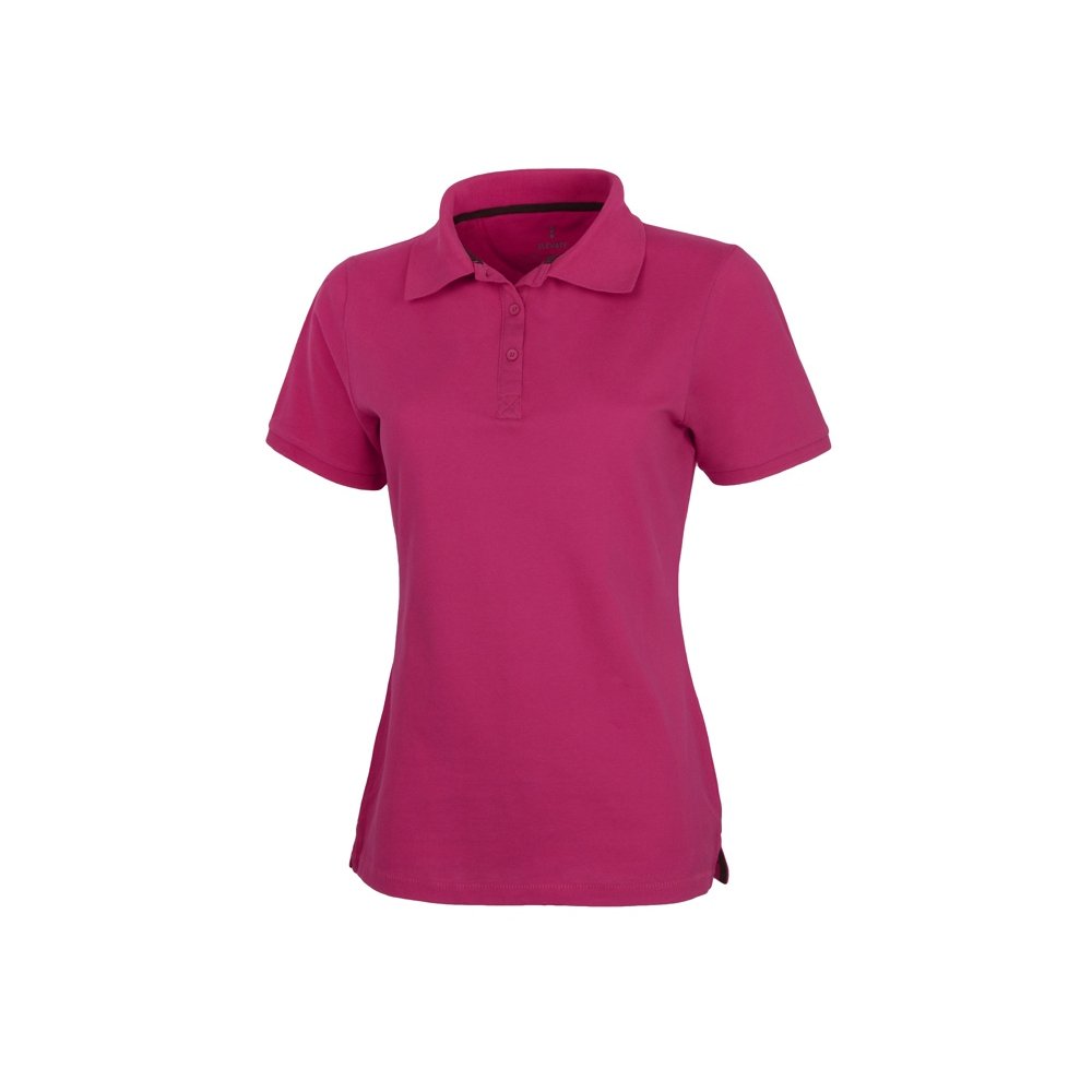 - Женская рубашка поло с короткими рукавами Calgary. Стандартный покрой. Опущенный плечевой шов, цепная строчка. Мужская и детская модели на двух пуговицах. Женская модель с планкой на три пуговицы. Боковые разрезы с атласной лентой внутри. Детали со швами Pick-Stitch. Принт лого сзади в тон изделия. Атласная лента внутри горловины. Полумесяц. Резинка 1х1 на воротнике и манжетах. Трикотажное пике, 100% хлопок. 200 г/м².