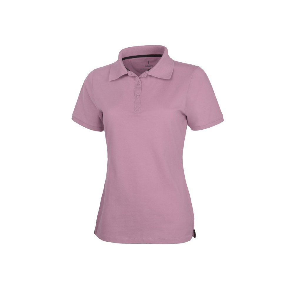 - Женская рубашка поло с короткими рукавами Calgary. Стандартный покрой. Опущенный плечевой шов, цепная строчка. Мужская и детская модели на двух пуговицах. Женская модель с планкой на три пуговицы. Боковые разрезы с атласной лентой внутри. Детали со швами Pick-Stitch. Принт лого сзади в тон изделия. Атласная лента внутри горловины. Полумесяц. Резинка 1х1 на воротнике и манжетах. Трикотажное пике, 100% хлопок. 200 г/м².