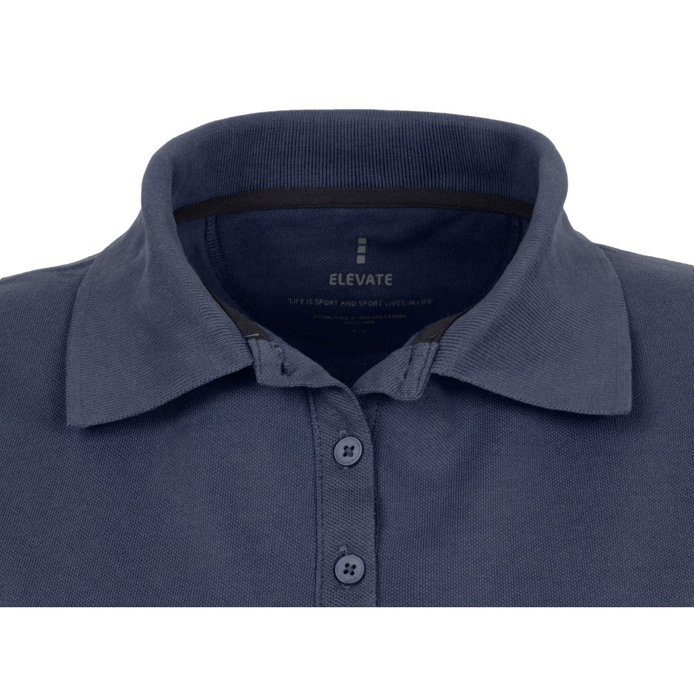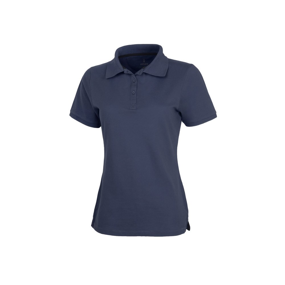 - Женская рубашка поло с короткими рукавами Calgary. Стандартный покрой. Опущенный плечевой шов, цепная строчка. Мужская и детская модели на двух пуговицах. Женская модель с планкой на три пуговицы. Боковые разрезы с атласной лентой внутри. Детали со швами Pick-Stitch. Принт лого сзади в тон изделия. Атласная лента внутри горловины. Полумесяц. Резинка 1х1 на воротнике и манжетах. Трикотажное пике, 100% хлопок. 200 г/м².