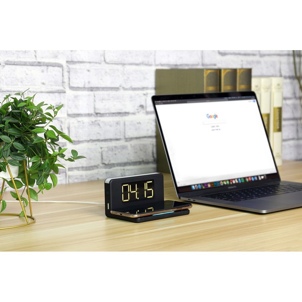 Часы настольные с беспроводным зарядным устройством Pitstop, черные арт. 11879.30