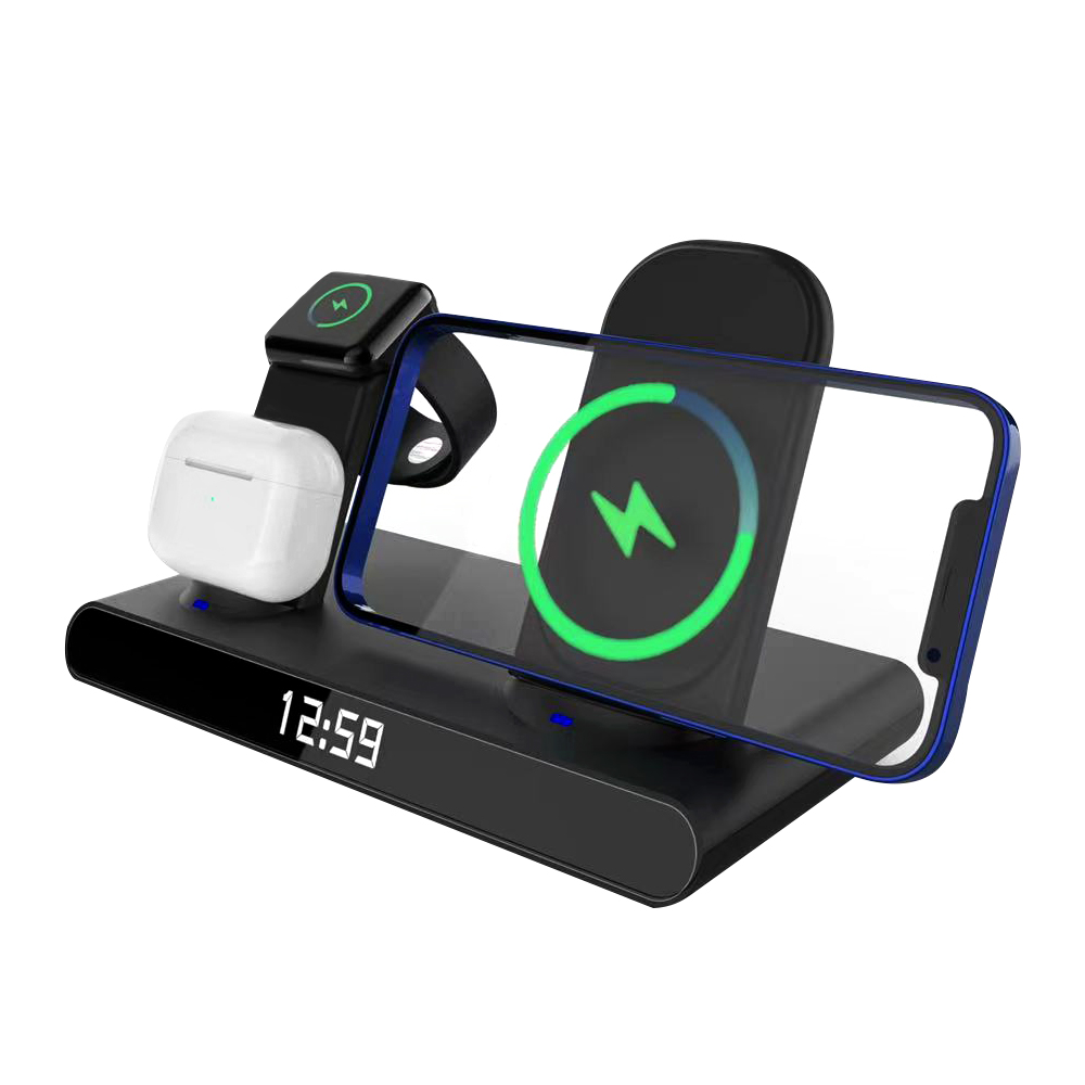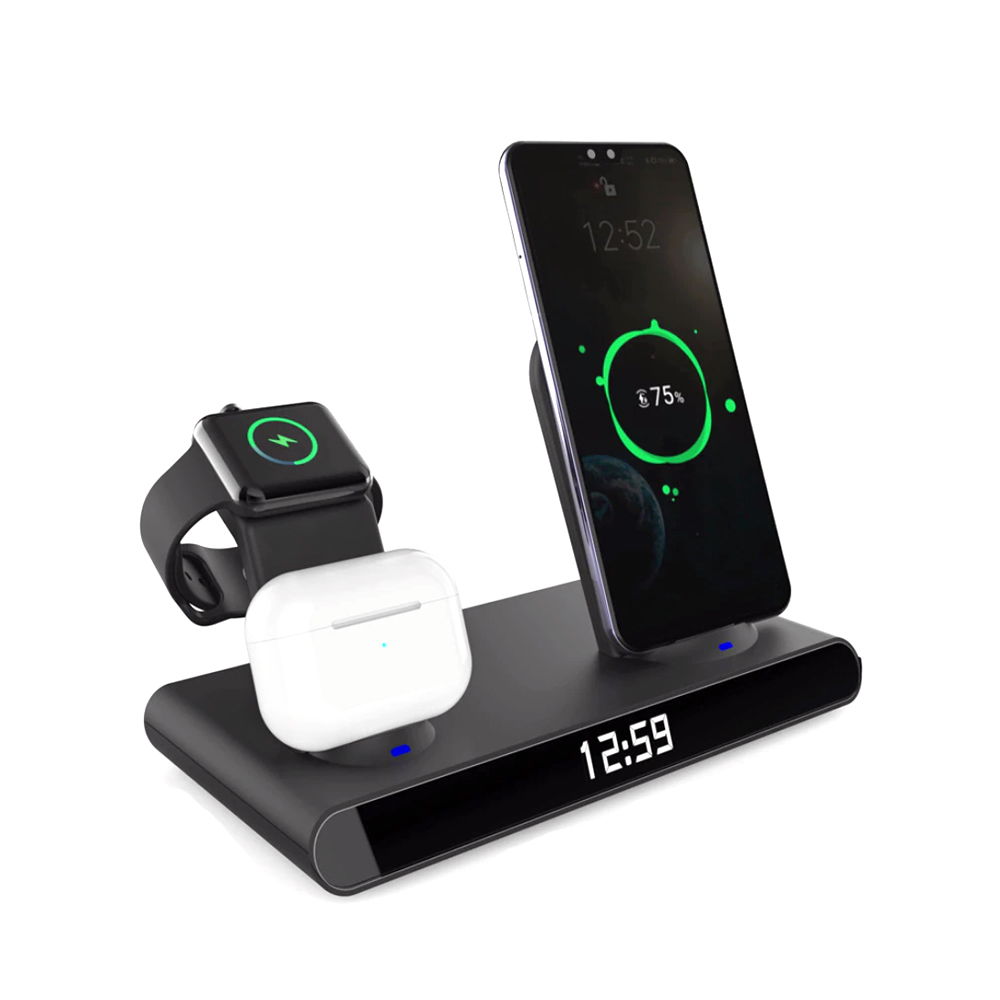 - Часы электронные Abbatt мультифункциональные с беспроводной зарядкой. Особенность этих электронных часов заключается в том, что они выполянют функцию не только часов и будильника, а еще с их помощью можно заряжать свои гаджеты. Удобство беспроводной зарядки говорит само за себя - очень комфортно заряжать смартфон, часы и наушники, просто положив их на зарядную станцию, не подключая при этом к ним никаких кабелей. Также есть возможность быстрой зарядки Qi. При беспроводной зарядке устройство меньше подвержено перепадам в сети, чем при подключении к розетке, тем самым увеличивается срок службы аккумулятора. Благодаря интерфейсу Type-C (шнур идёт в комплекте 1м) ваши гаджеты будут заряжаться более эффективно, а главное - одновременно. Вы можете смотреть фильмы, слушать музыку, звонить или отправлять сообщения во время всего процесса зарядки. Входы: 9V/2A 12/2A. Выходы: Беспроводной 10W / 7.5W / 5W / USB 5V / 0.8-1A / Airpod 3W / Apple watch 2.5W