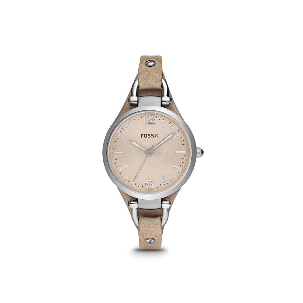 - Корпус серебристый/циферблат кремовый/крепление светло коричневый
