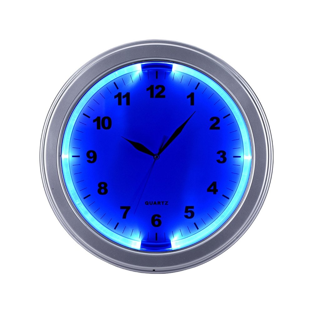 - Настенные часы в пластиковом корпусе серебристого цвета имеют классический дизайн. Изюминкой этих часов является приятная и мягкая подсветка. Подсветка включается/выключается с помощью маленького рычажка On/Off, расположенного в нижней части корпуса. Отличный выбор для подарка родным и близким.