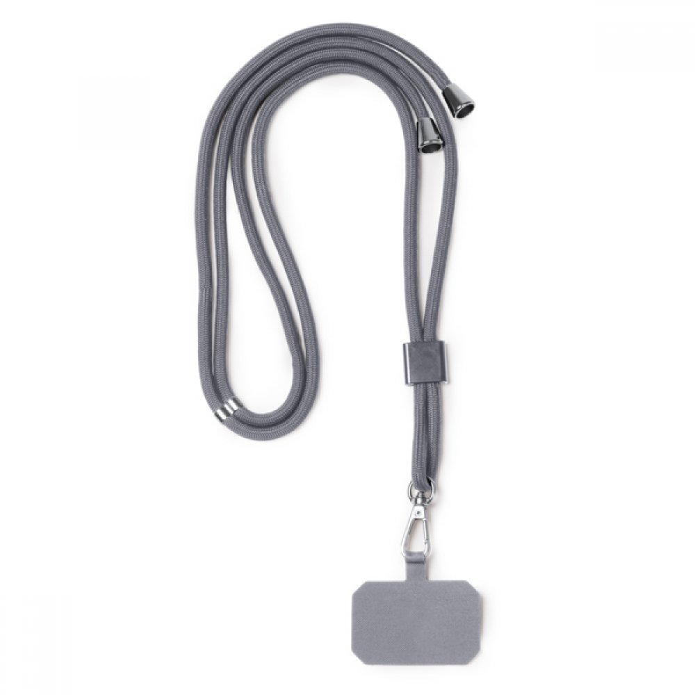 Держатель для мобильного телефона со шнуром из переработанного полиэстера RPET. Регулируемый ремень и карабин.