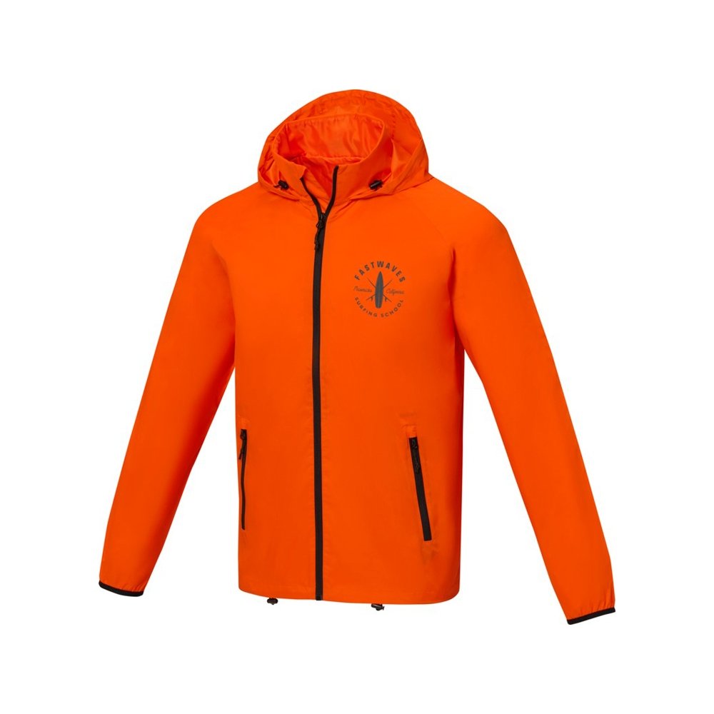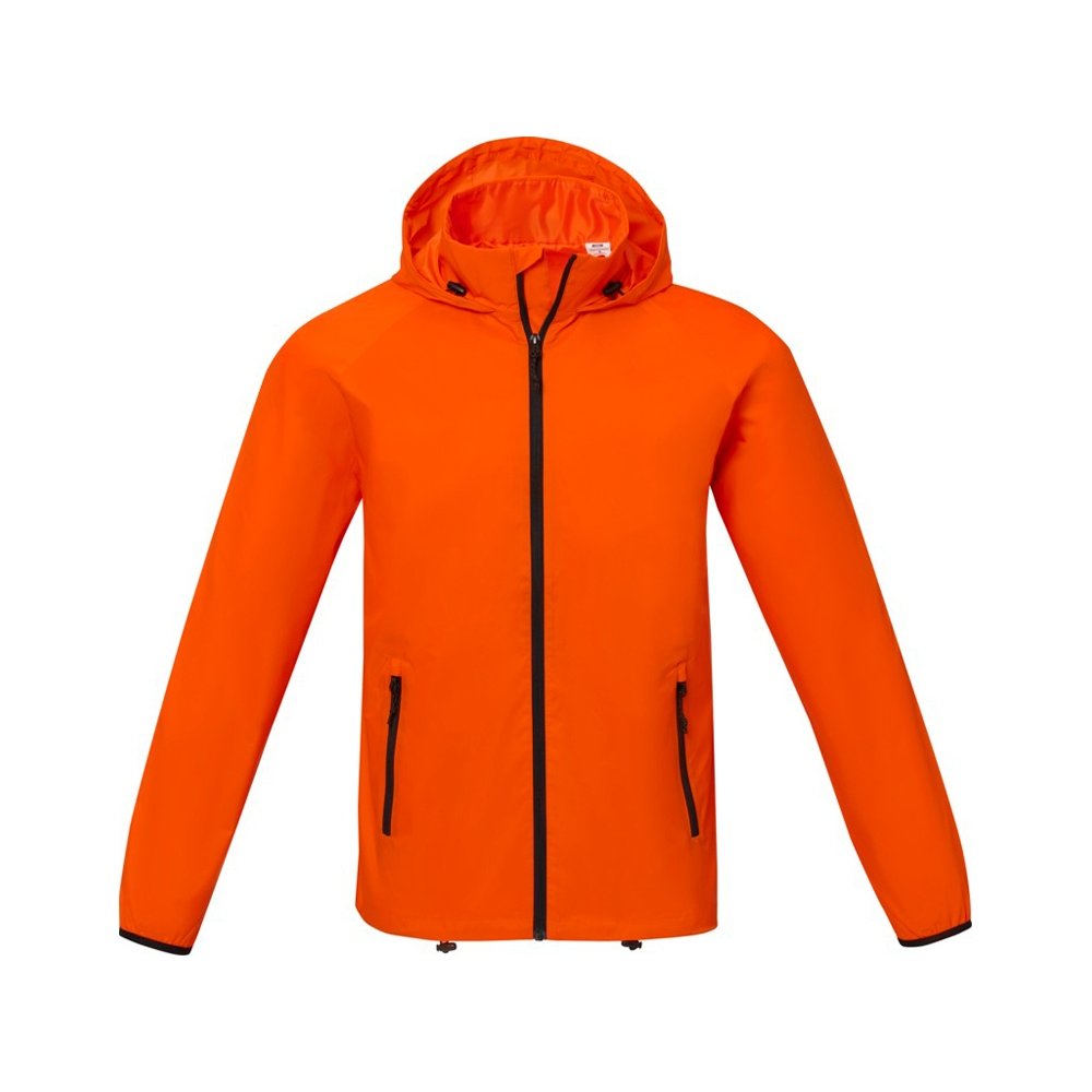 - Dinlas Мужская легкая куртка. Возможность нанесения на внутреннюю часть фирменной символики. Для большего комфорта основной ярлык можно оторвать или отрезать. Водонепроницаемость 500 мм. Рукав реглан. Капюшон, который можно свернуть. Обратная застежка-молния по центру. Передние карманы с застежкой-молнией. Внутренний карман. Регулируемый шнурок внизу подола и капюшоне.