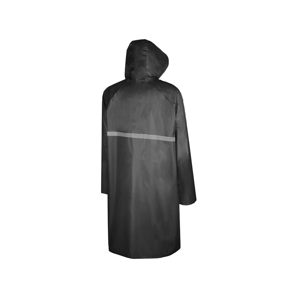 - Длинный дождевик выполнен из полиэстера с водоотталкивающей пропиткой. Застегивается на молнию, поверх которой — планка на кнопках, что дополнительно защищает от ветра и промокания. Посадку капюшона можно регулировать при помощи шнурка, ширина рукава регулируется кнопкой. Светоотражающая тесьма на груди и спине делает человека в плаще заметным даже в темное время суток. Вместительные накладные карманы защищены сверху клапаном. Дополнительная проклейка швов дождевика обеспечивает большую степень водонепроницаемости. - водонепроницаемость обеспечивается водоотталкивающей пропиткой материала и дополнительной проклейкой швов - светоотражающие элементы делают человека заметным в темное время суток - вместительные накладные карманы
