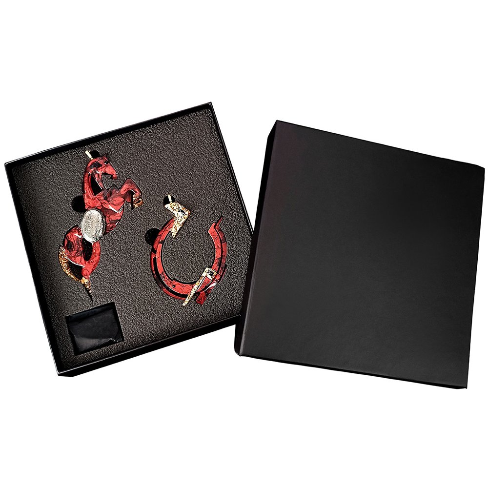 - Изысканный дуэт талисманов, наполненных символизмом и энергией в духе Василия Кандинского. В набор входят две уникальные фигурки: лошадь и подкова, созданные в оттенке «Гранатовый шёлк» — насыщенном, благородном бордо с лёгким шелковистым отблеском, напоминающем вечернее праздничное платье. Игрушки бережно упакованы в стильную коробку из плотного премиального картона с индивидуальным ложементом, который надёжно фиксирует игрушку. Такой презент не требует дополнительной упаковки и готов порадовать своего обладателя. Для вашего удобства к каждой игрушке прилагается элегантная цепочка или ленточка, с помощью которой вы легко сможете подвесить их на ёлку.