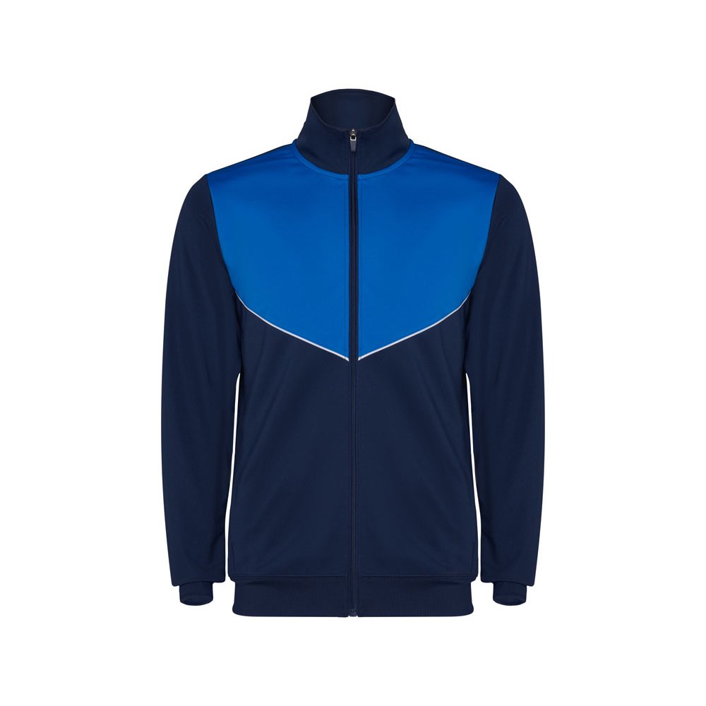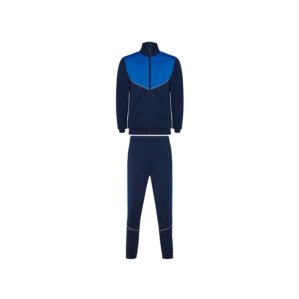 - Спортивный костюм из облегченного и эластичного материала. - куртка с контрастными вставками и кантами - высокий воротник с контрастами строчками - центральная молния - боковые карманы - риб 2х2 на манжетах и низу - контрастные боковые части с кантами - молнии по низу - брюки на эластичном поясе со шнурками
