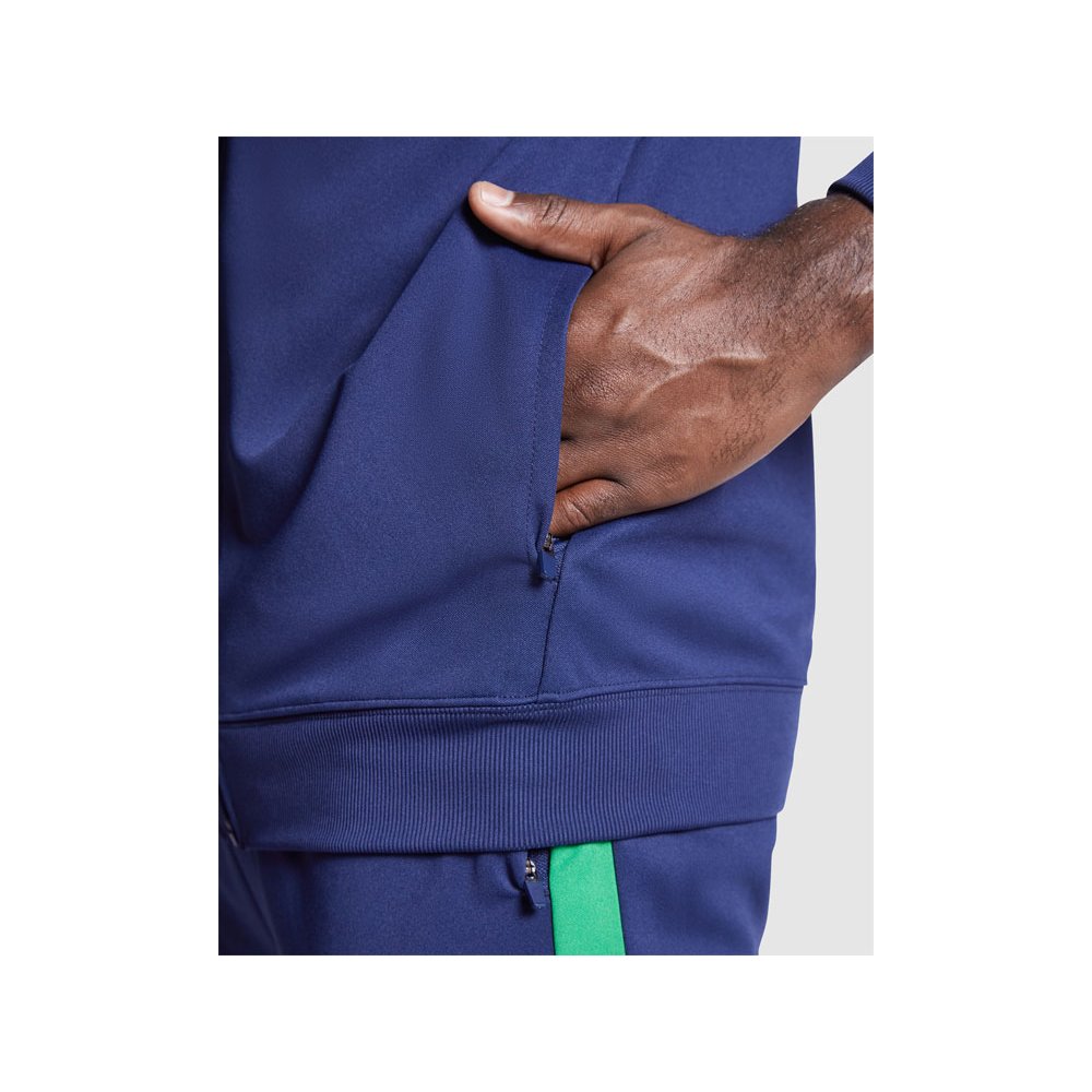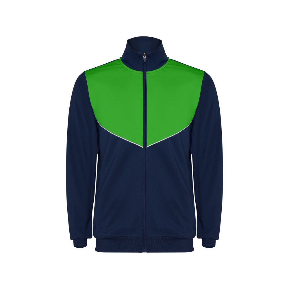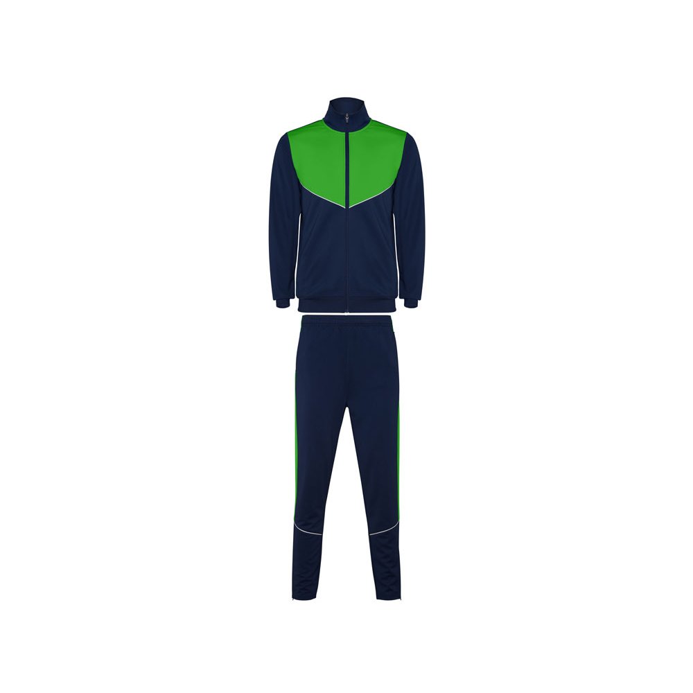 - Спортивный костюм из облегченного и эластичного материала. - куртка с контрастными вставками и кантами - высокий воротник с контрастами строчками - центральная молния - боковые карманы - риб 2х2 на манжетах и низу - контрастные боковые части с кантами - молнии по низу - брюки на эластичном поясе со шнурками