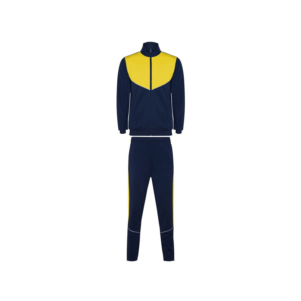 - Спортивный костюм из облегченного и эластичного материала. - куртка с контрастными вставками и кантами - высокий воротник с контрастами строчками - центральная молния - боковые карманы - риб 2х2 на манжетах и низу - контрастные боковые части с кантами - молнии по низу - брюки на эластичном поясе со шнурками