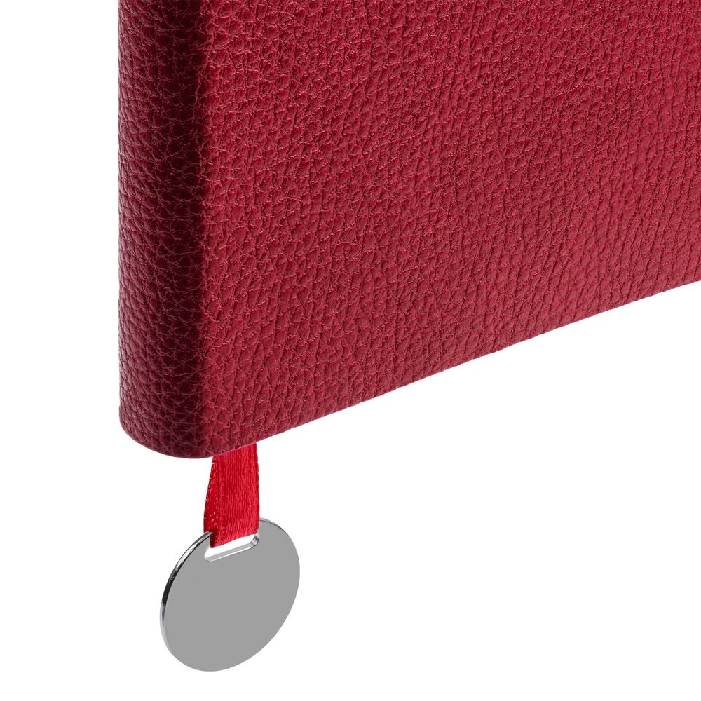 Ежедневник с гибкой обложкой, выполнен из материал La Fite, красный РР, дополнен ляссе в цвет обложки с металлическим шильдом.