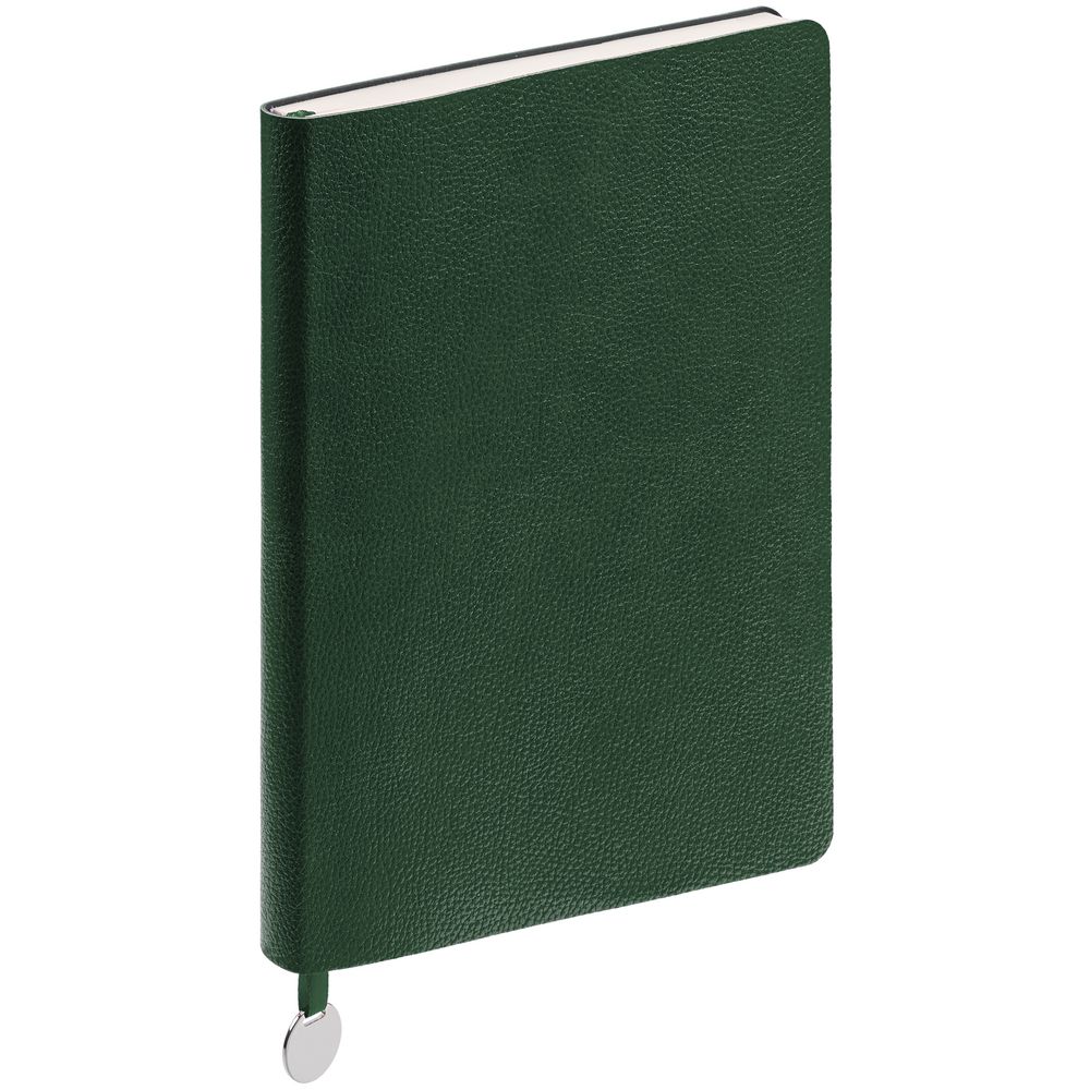 Ежедневник с гибкой обложкой, выполнен из материала La Fite, зеленый, дополнен ляссе в цвет обложки с металлическим шильдом.Блок 985, без календарной сетки и информационного блока:
