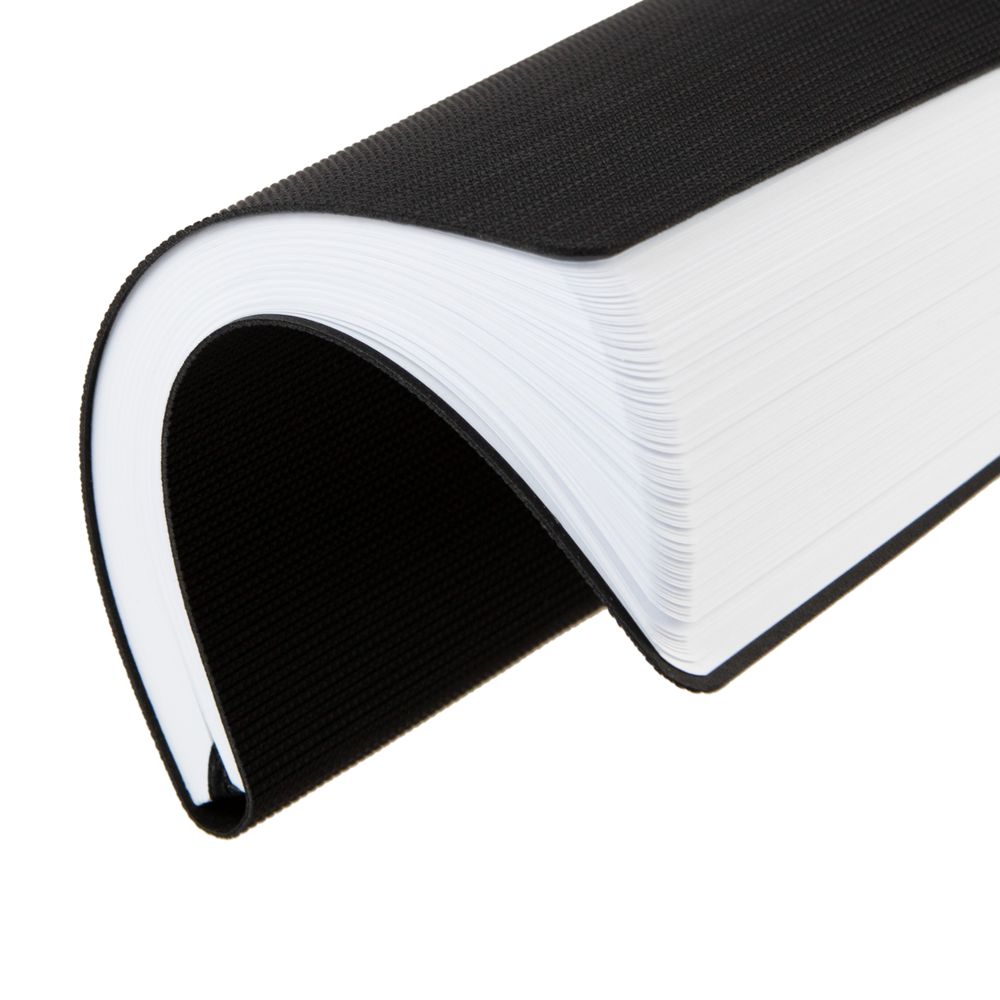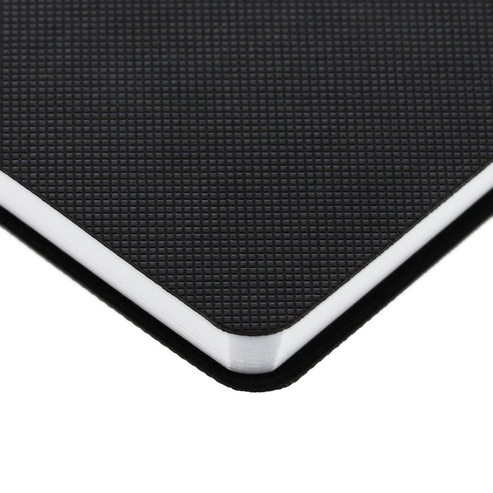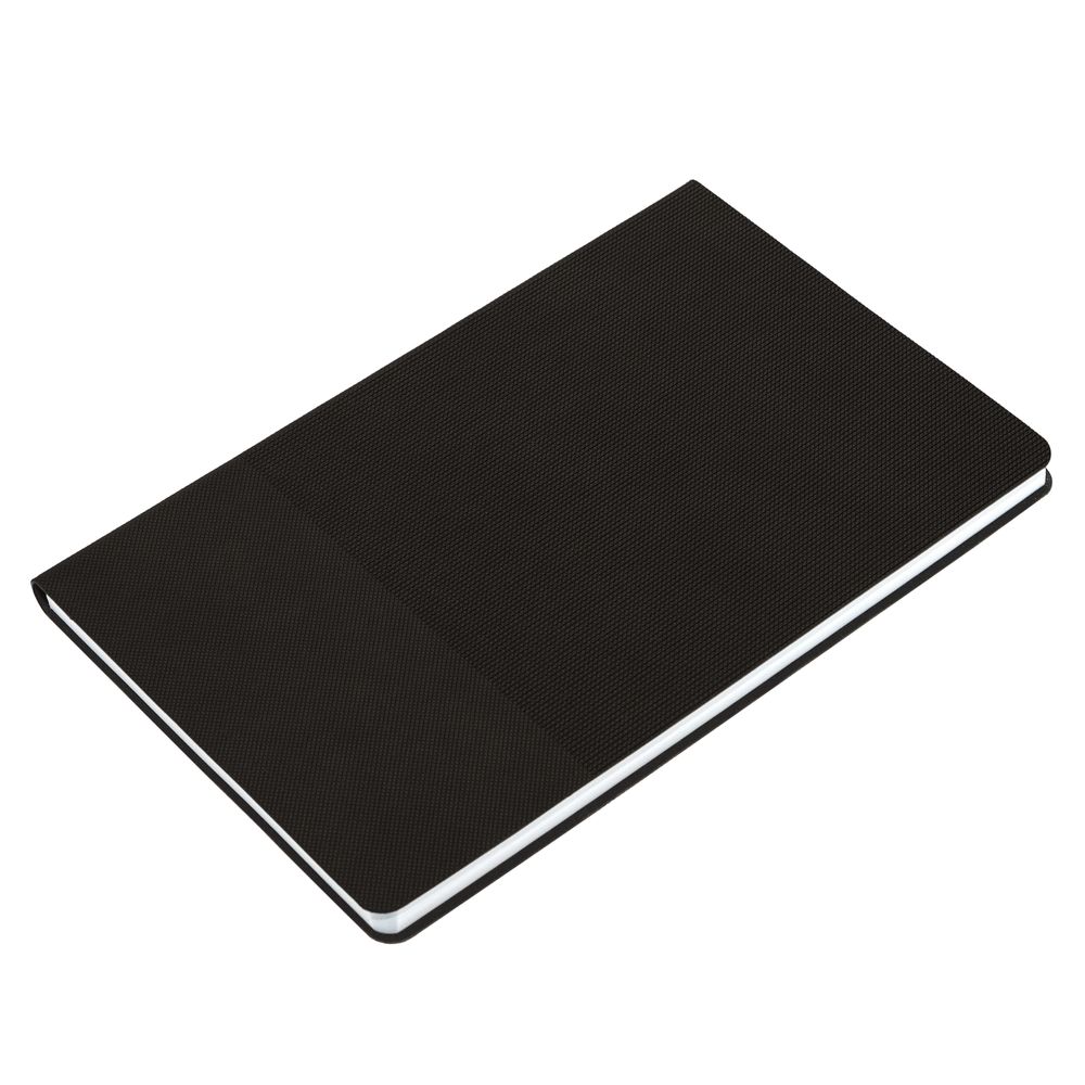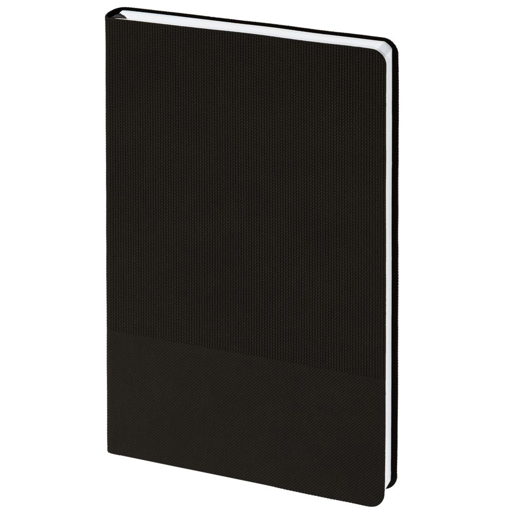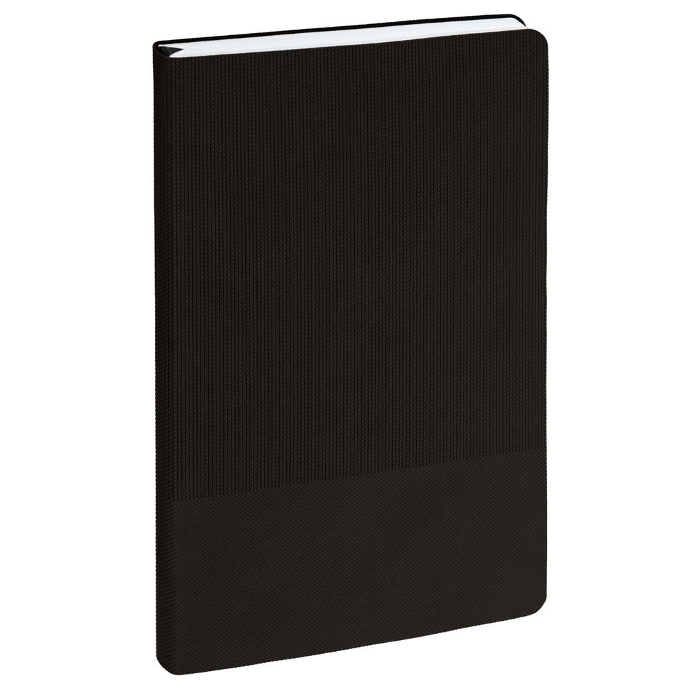 Ежедневник с гибкой обложкой, выполнен из материала Canyon, черный АА, дополнен ляссе в цвет обложки. Блинтовое тиснение на обложке создает эффект вязаного полотна.